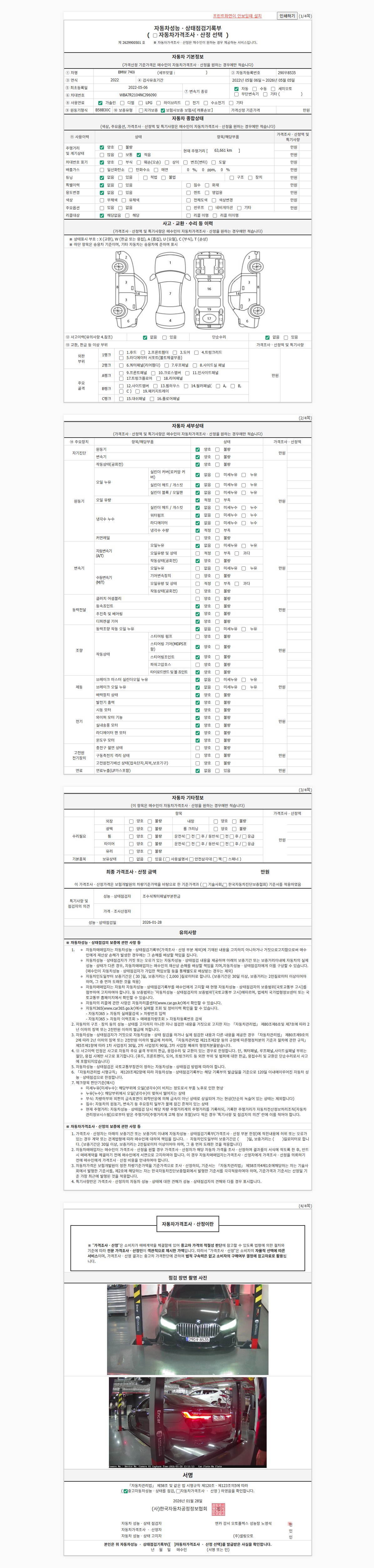| 주행거리 | 63,661 km | 차량번호 | 290우8535 | 사고유무 | 성능기록부 참조 | 제시번호 | 제 2026012869 호 |