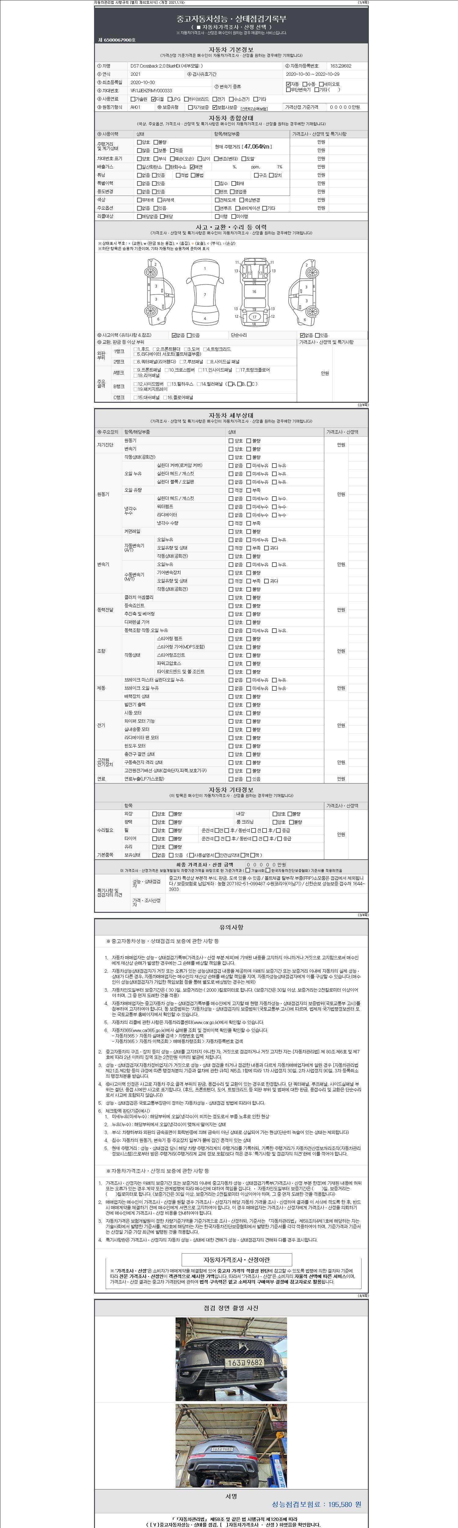 | 주행거리 | 47,064 km | 차량번호 | 163고9682 | 사고유무 | 성능기록부 참조 | 제시번호 | 제 2147483647 호 |