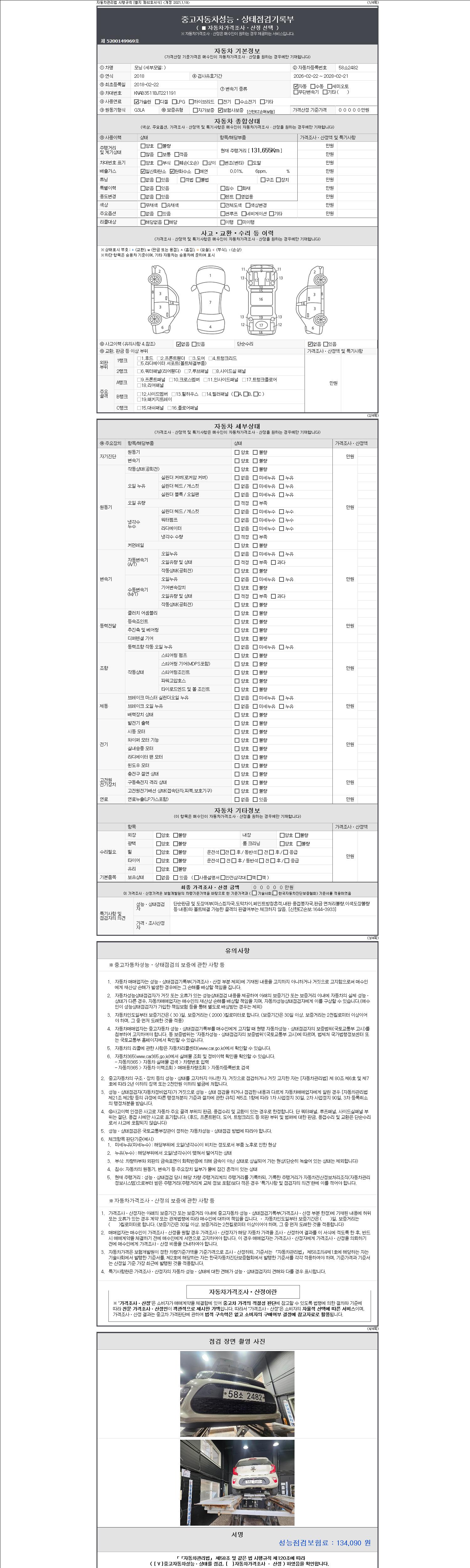 | 주행거리 | 131,655 km | 차량번호 | 58소2482 | 사고유무 | 성능기록부 참조 | 제시번호 | 제 2147483647 호 |