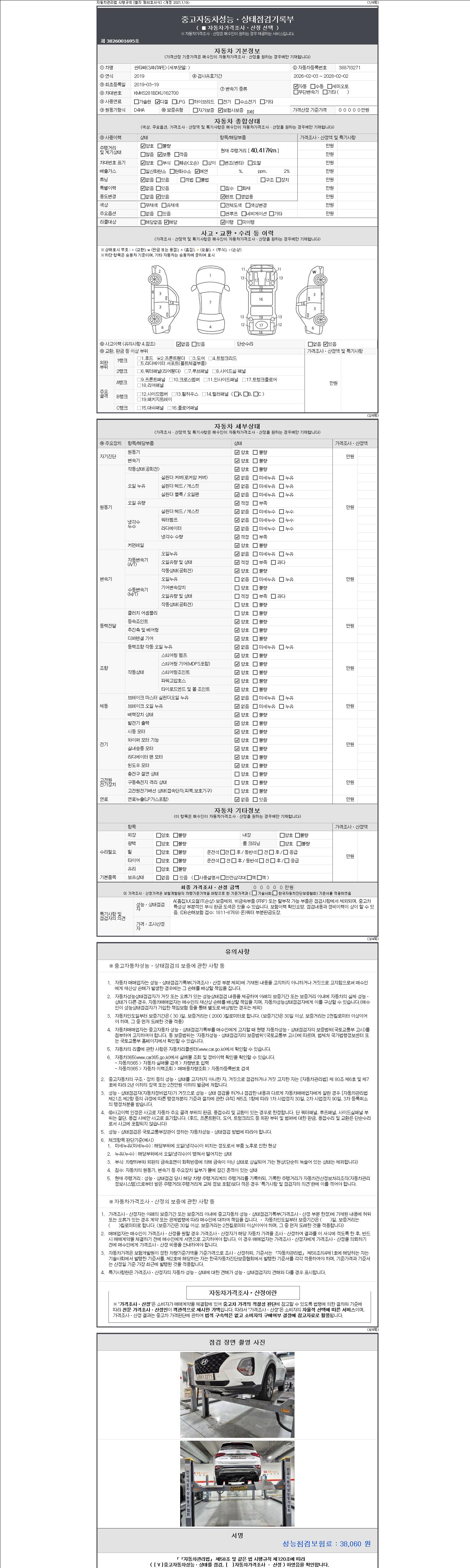 | 주행거리 | 40,417 km | 차량번호 | 388가3271 | 사고유무 | 성능기록부 참조 | 제시번호 | 제 2147483647 호 |