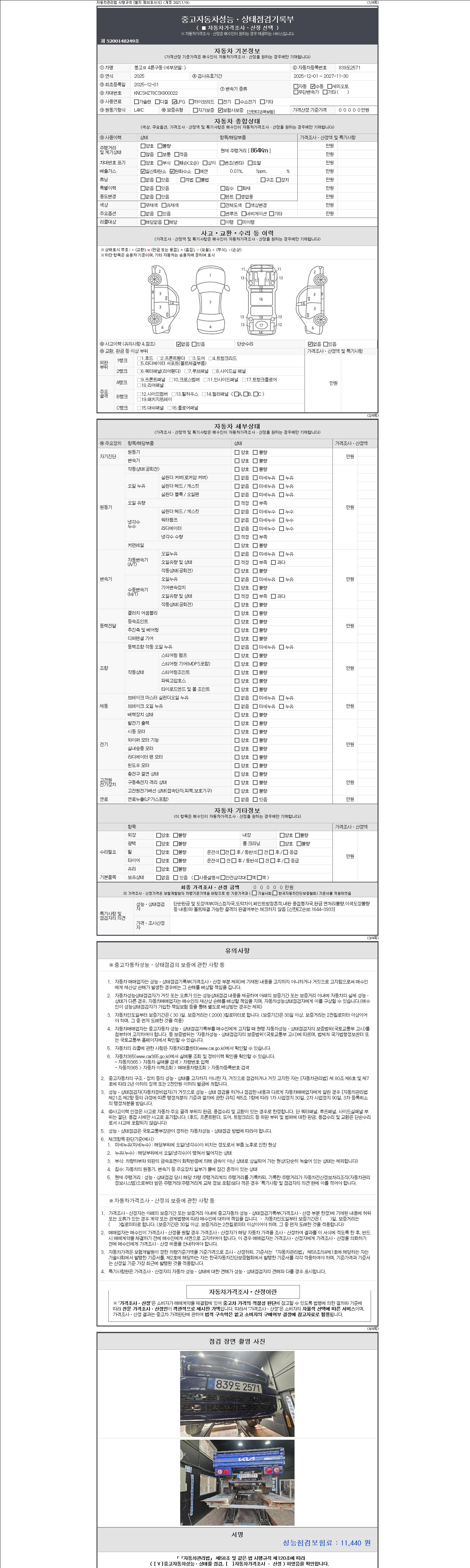 | 주행거리 | 864 km | 차량번호 | 839도2571 | 사고유무 | 성능기록부 참조 | 제시번호 | 제 2147483647 호 |