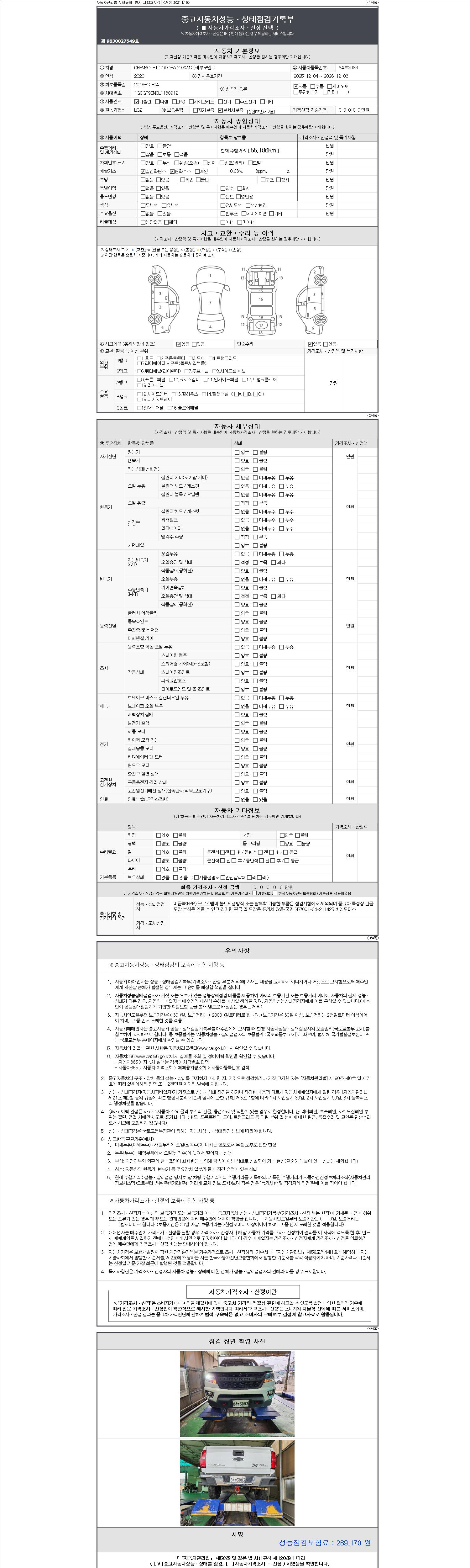 | 주행거리 | 55,186 km | 차량번호 | 84부3083 | 사고유무 | 성능기록부 참조 | 제시번호 | 제 2147483647 호 |
