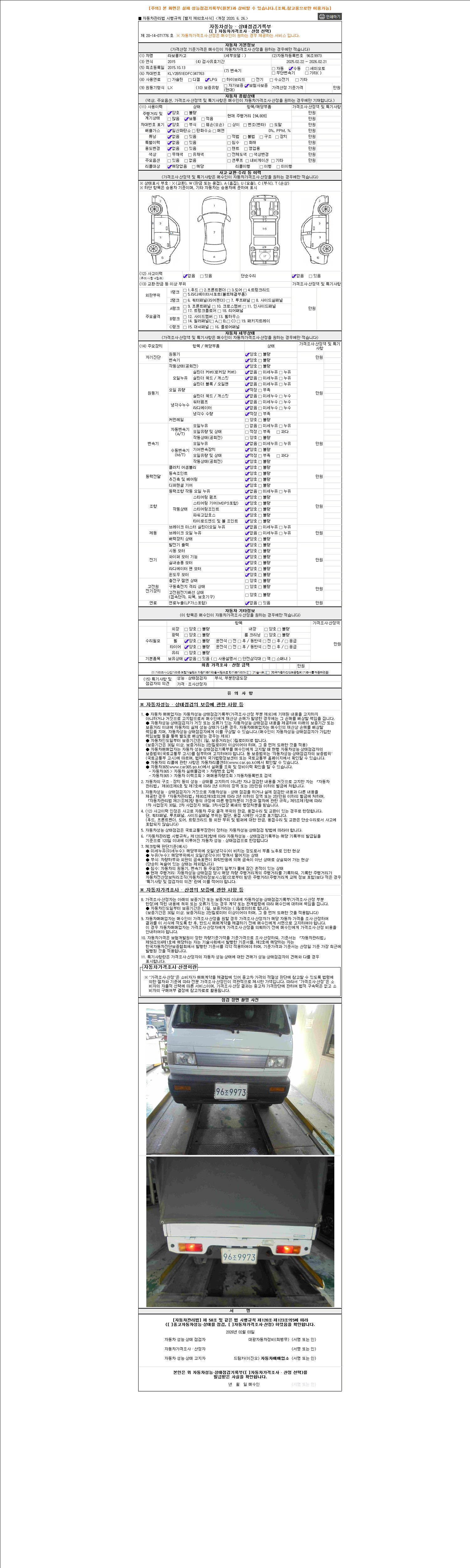 - 2. 차량 등록증이나 성능점검지 등을 상담자에게 요청및 확인하시고 사전에 미리 점검 하시기를 권유드립니다.