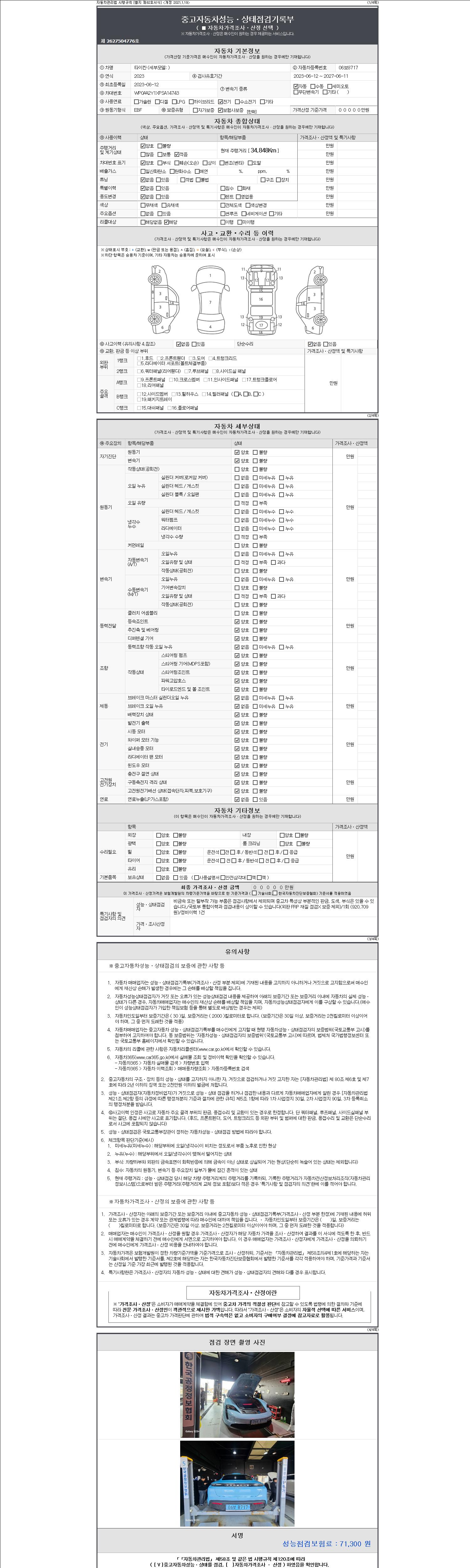 | 주행거리 | 34,848 km | 차량번호 | 06보8717 | 사고유무 | 성능기록부 참조 | 제시번호 | 제 2147483647 호 |
