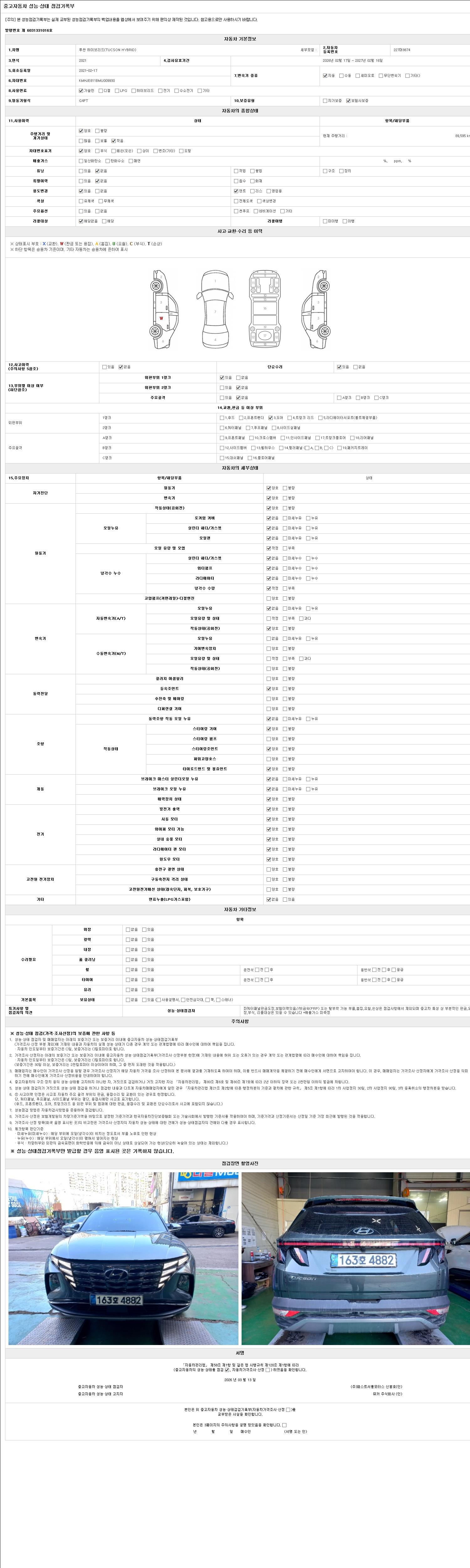 - 2. 차량 등록증이나 성능점검지 등을 상담자에게 요청및 확인하시고 사전에 미리 점검 하시기를 권유드립니다.