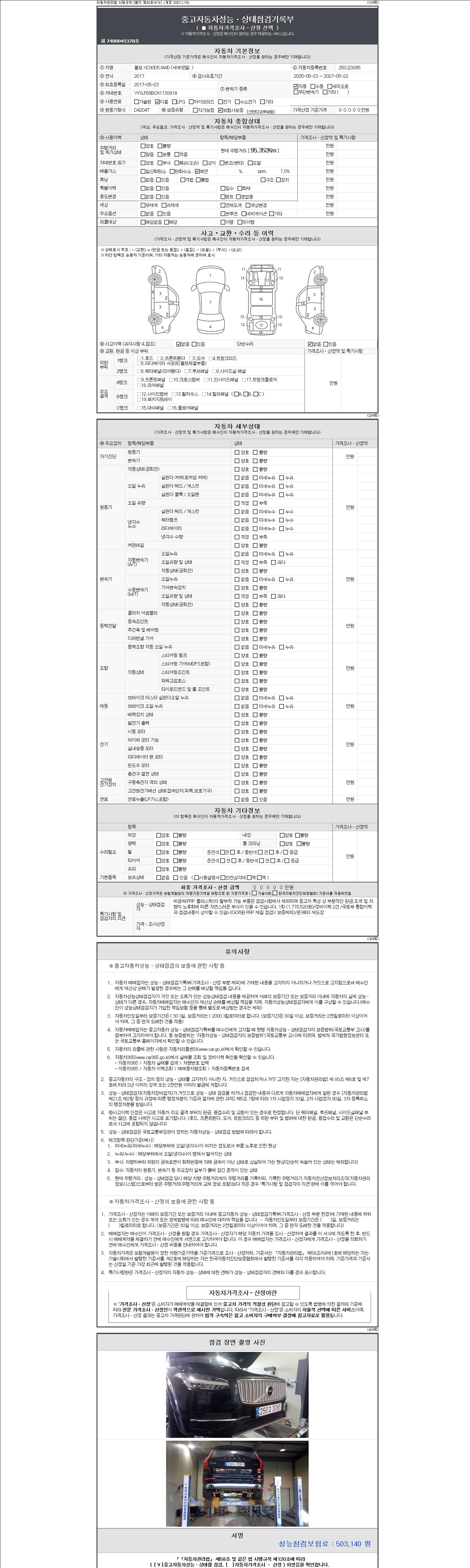 -중고자동차 매매업자를 통해 차량을 구입하실 경우 반드시 "중고자동차 성능, 상태점검 기록부"를 교뷰 받으셔야 하며, 매매업자는 반드시 의무 교부 하여야 압니다.