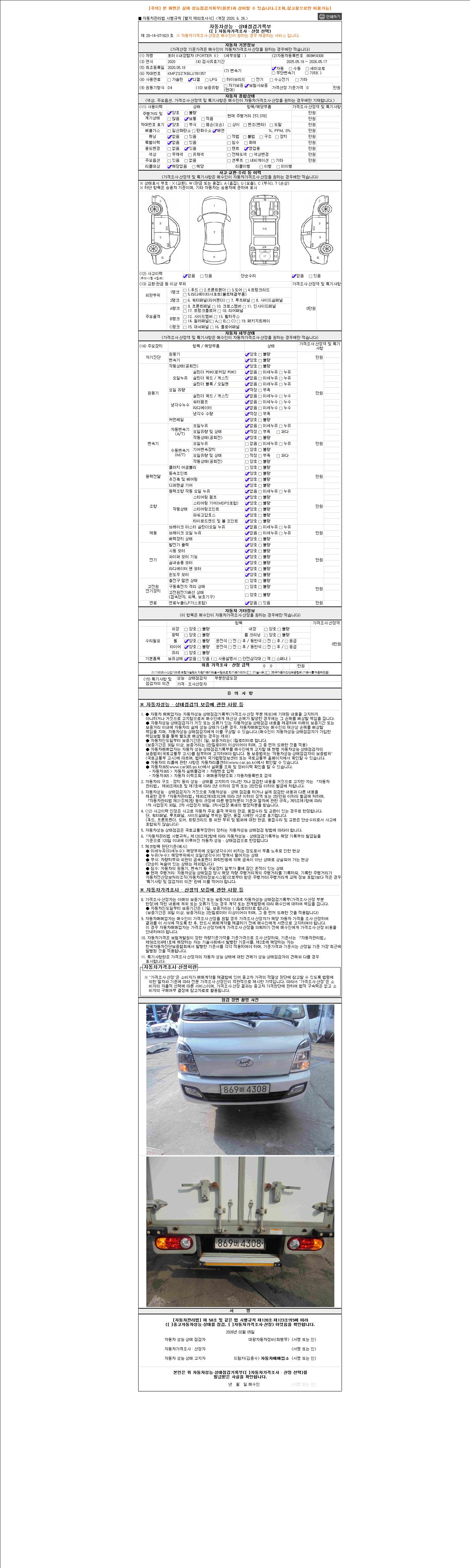 - 2. 차량 등록증이나 성능점검지 등을 상담자에게 요청및 확인하시고 사전에 미리 점검 하시기를 권유드립니다.
