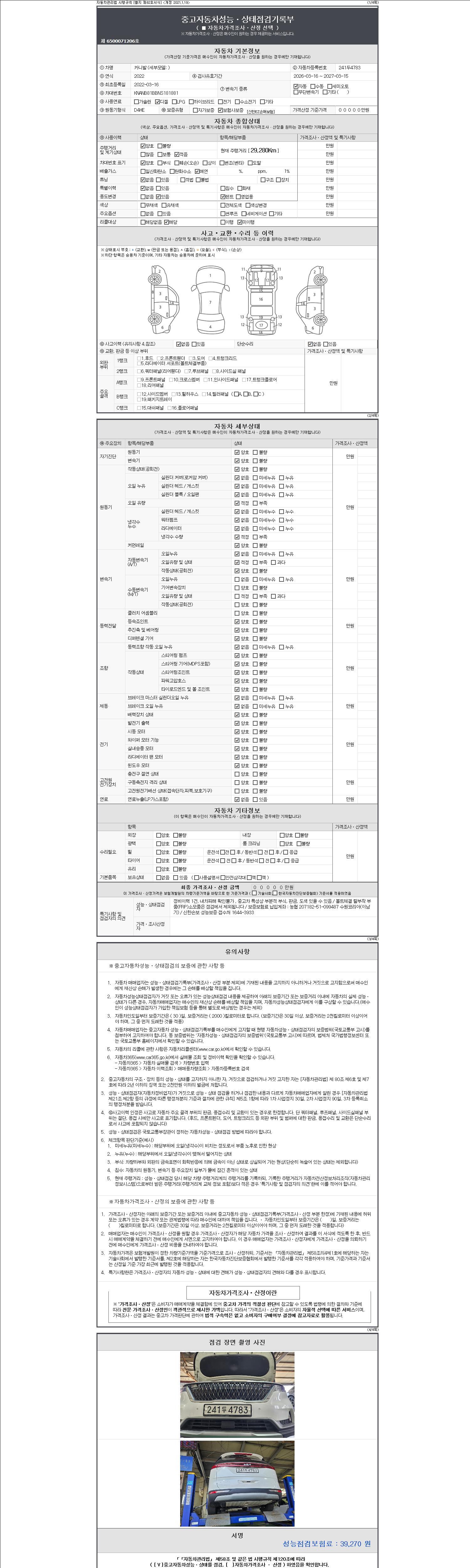 | 주행거리 | 29,280 km | 차량번호 | 241두4783 | 사고유무 | 성능기록부 참조 | 제시번호 | 제 2147483647 호 |