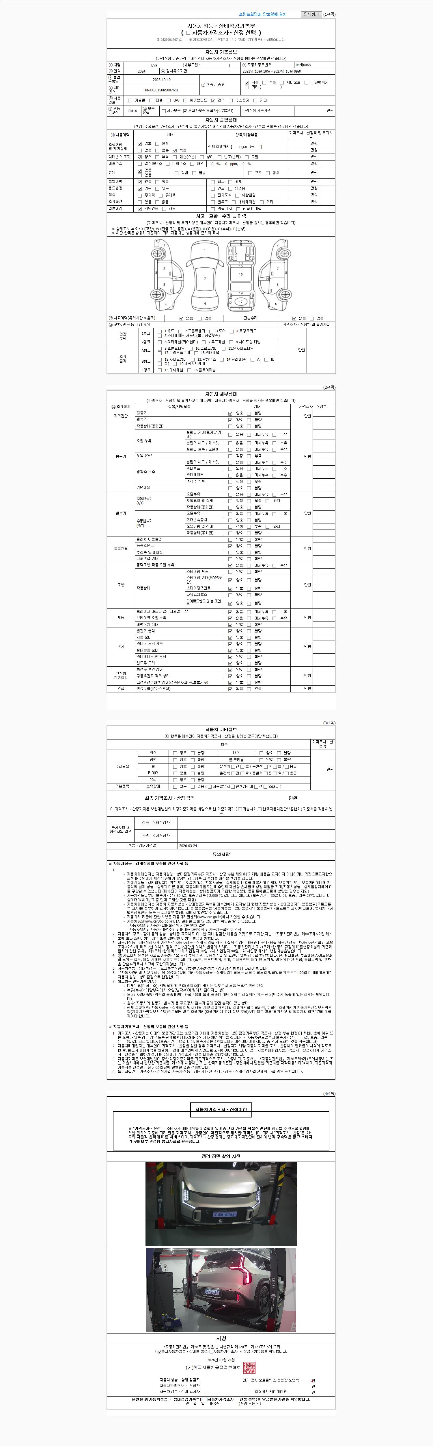 | 주행거리 | 31,612 km | 차량번호 | 04버6068 | 사고유무 | 성능기록부 참조 | 제시번호 | 제 2026037591 호 |