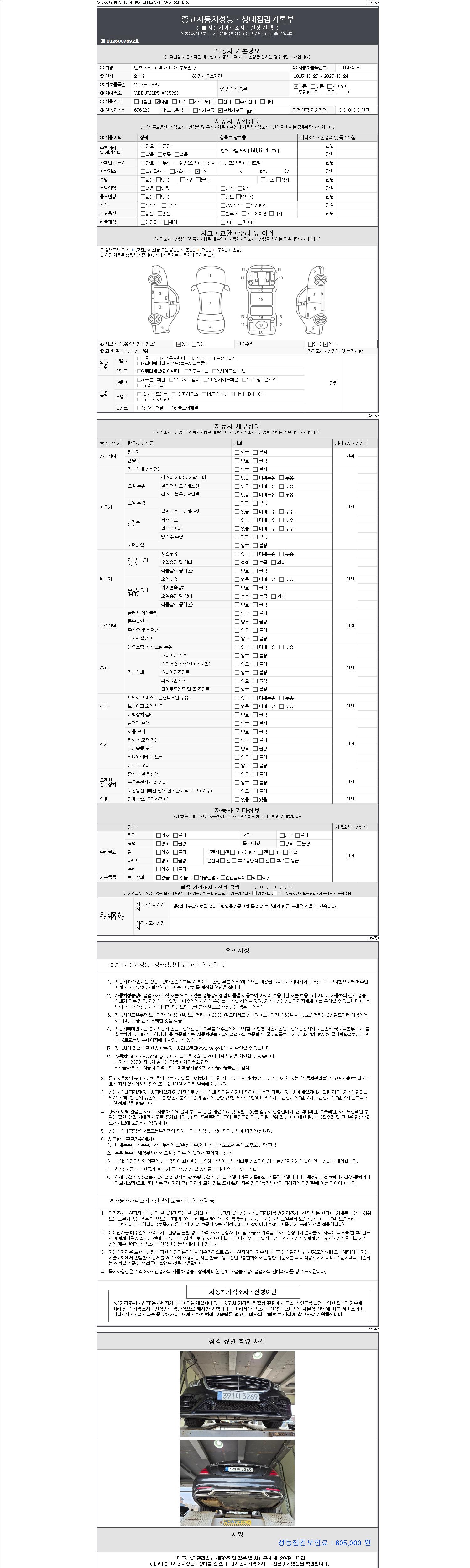 | 주행거리 | 69,614 km | 차량번호 | 391마3269 | 사고유무 | 성능기록부 참조 | 제시번호 | 제 2147483647 호 |