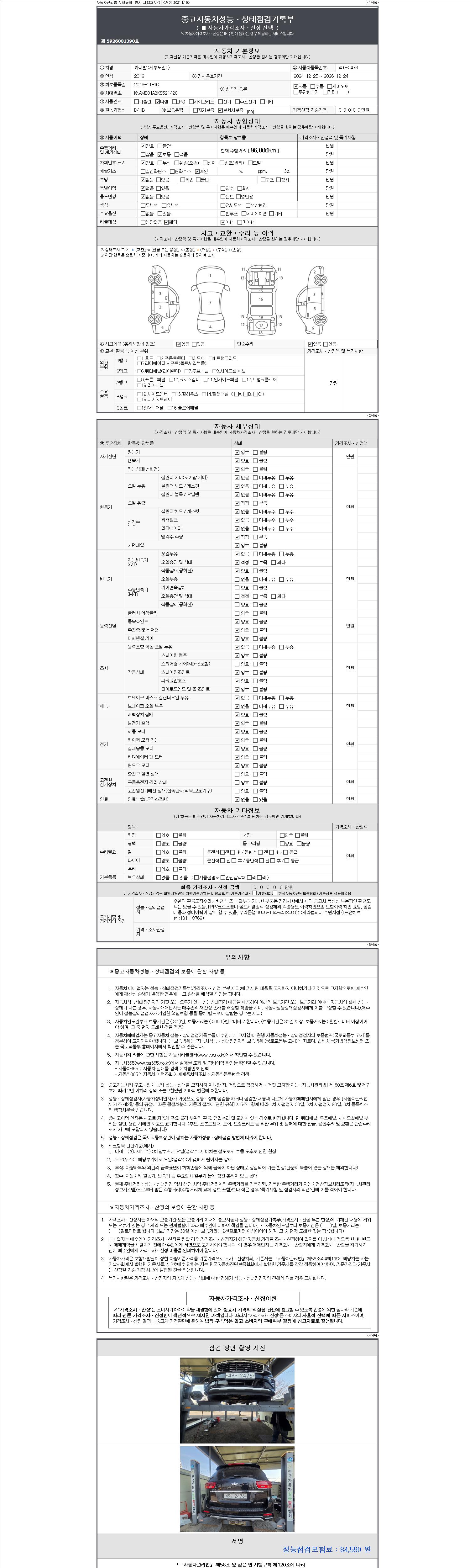 | 주행거리 | 96,006 km | 차량번호 | 49도2476 | 사고유무 | 성능기록부 참조 | 제시번호 | 제 2147483647 호 |