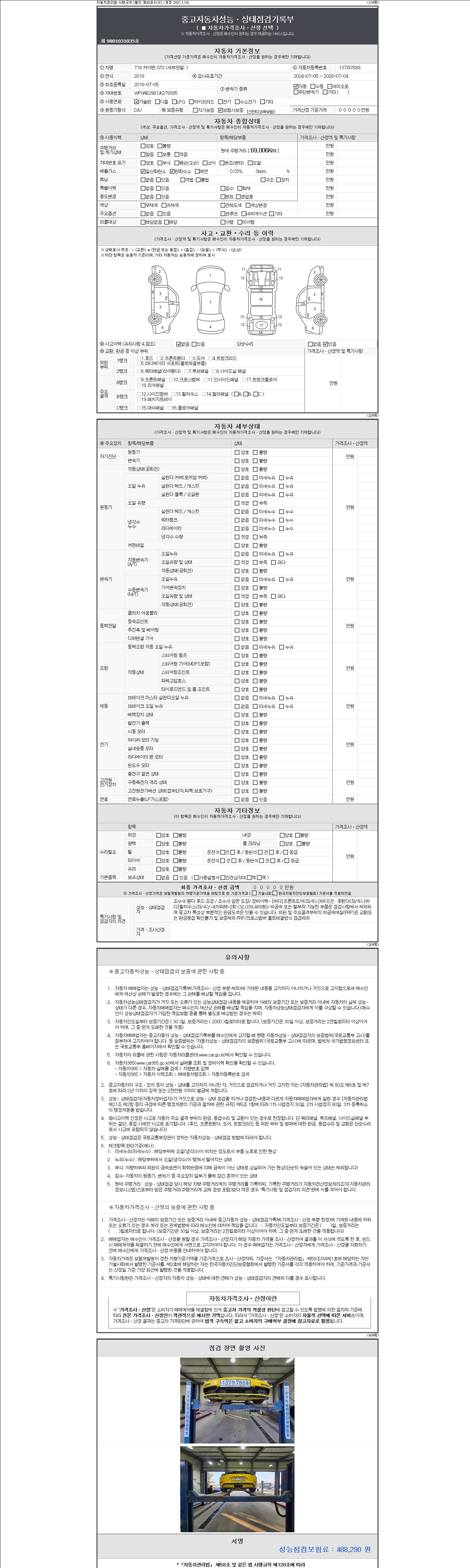 | 주행거리 | 69,006 km | 차량번호 | 137라7888 | 사고유무 | 성능기록부 참조 | 제시번호 | 제 2147483647 호 |