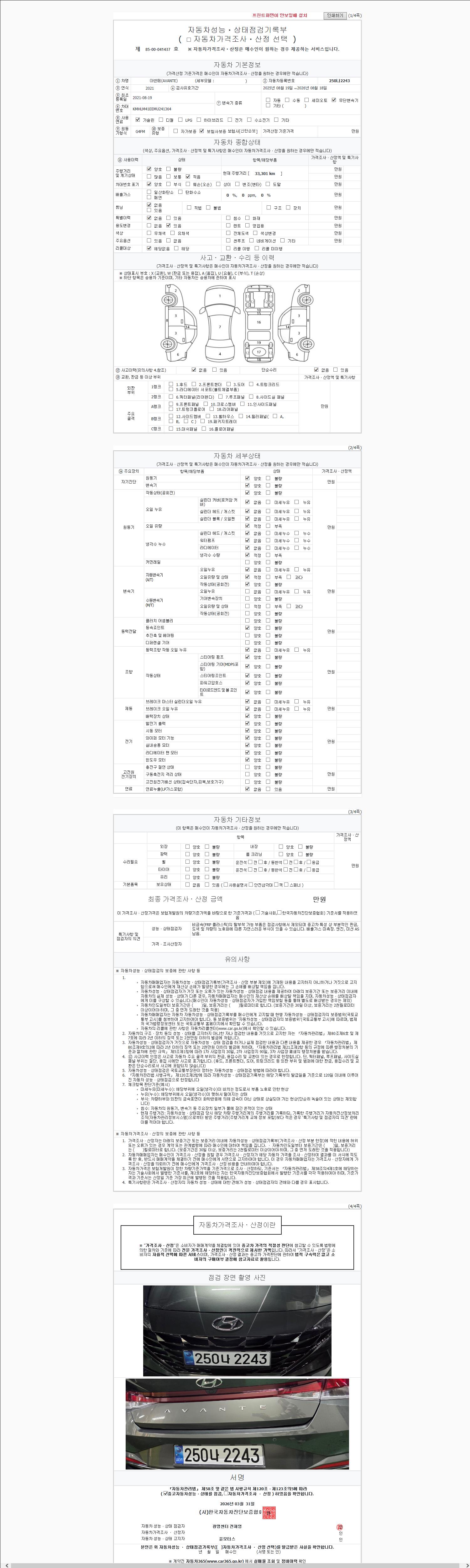 - 2. 차량 등록증이나 성능점검지 등을 상담자에게 요청및 확인하시고 사전에 미리 점검 하시기를 권유드립니다.