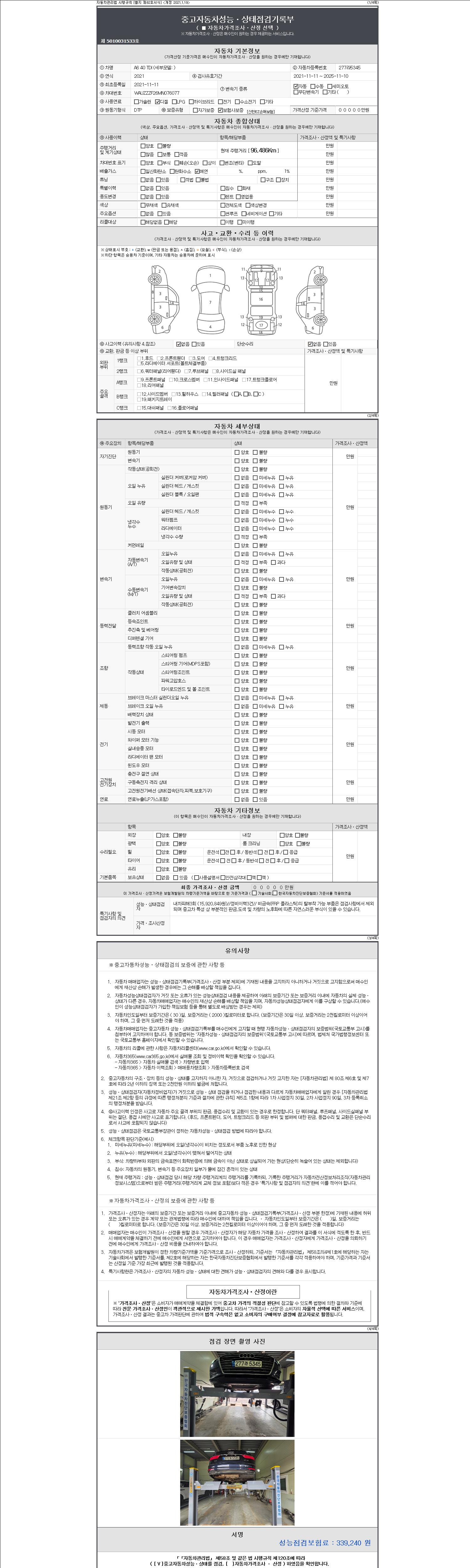 -중고자동차 매매업자를 통해 차량을 구입하실 경우 반드시 "중고자동차 성능, 상태점검 기록부"를 교뷰 받으셔야 하며, 매매업자는 반드시 의무 교부 하여야 압니다.