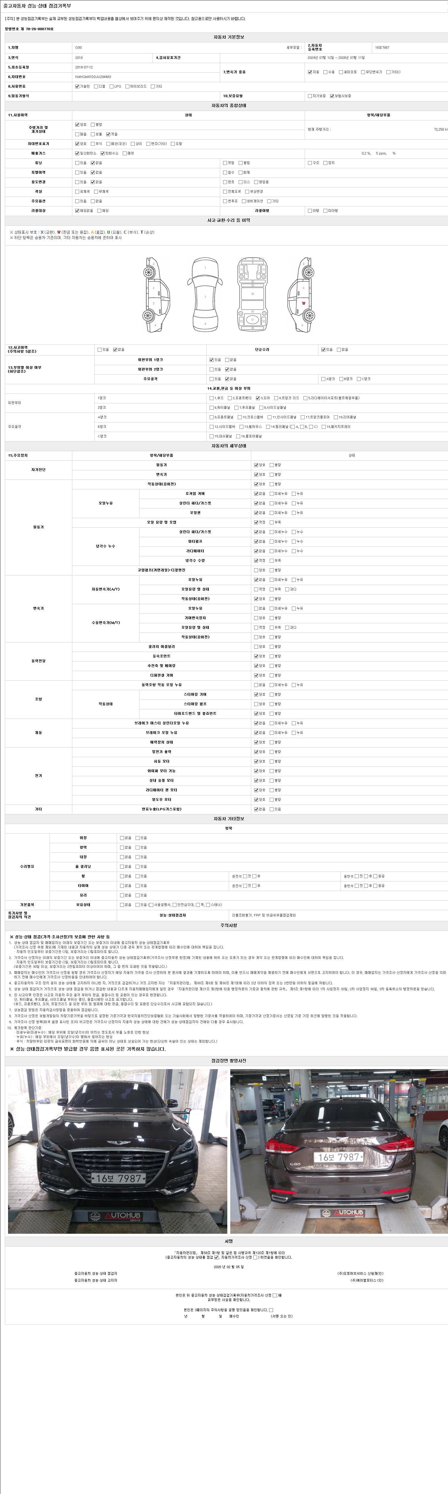 • 2. 차량 등록증이나 성능점검지 등을 상담자에게 요청및 확인하시고 사전에 미리 점검 하시기를 권유드립니다.