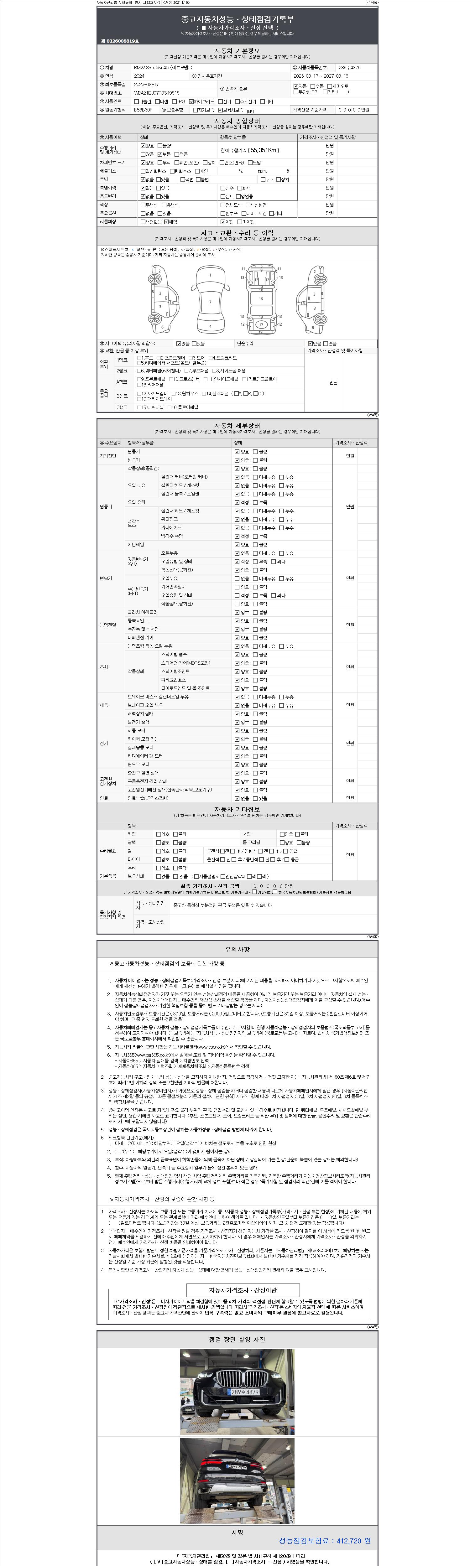 -중고자동차 매매업자를 통해 차량을 구입하실 경우 반드시 "중고자동차 성능, 상태점검 기록부"를 교뷰 받으셔야 하며, 매매업자는 반드시 의무 교부 하여야 압니다.