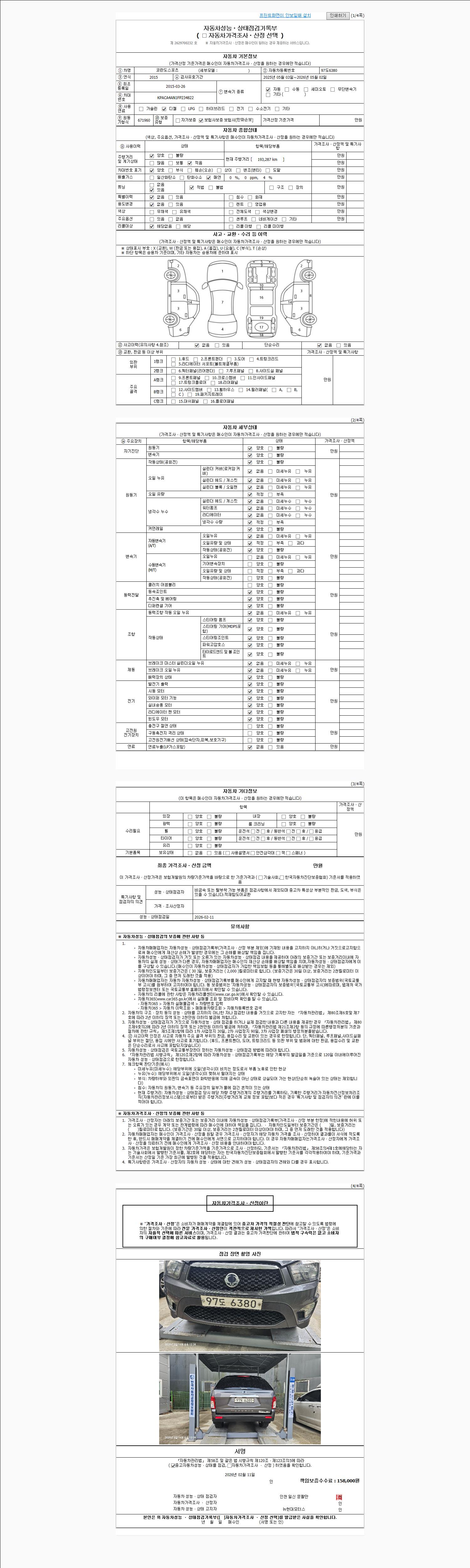 | 주행거리 | 193,287 km | 차량번호 | 97도6380 | 사고유무 | 성능기록부 참조 | 제시번호 | 제 2026006816 호 |