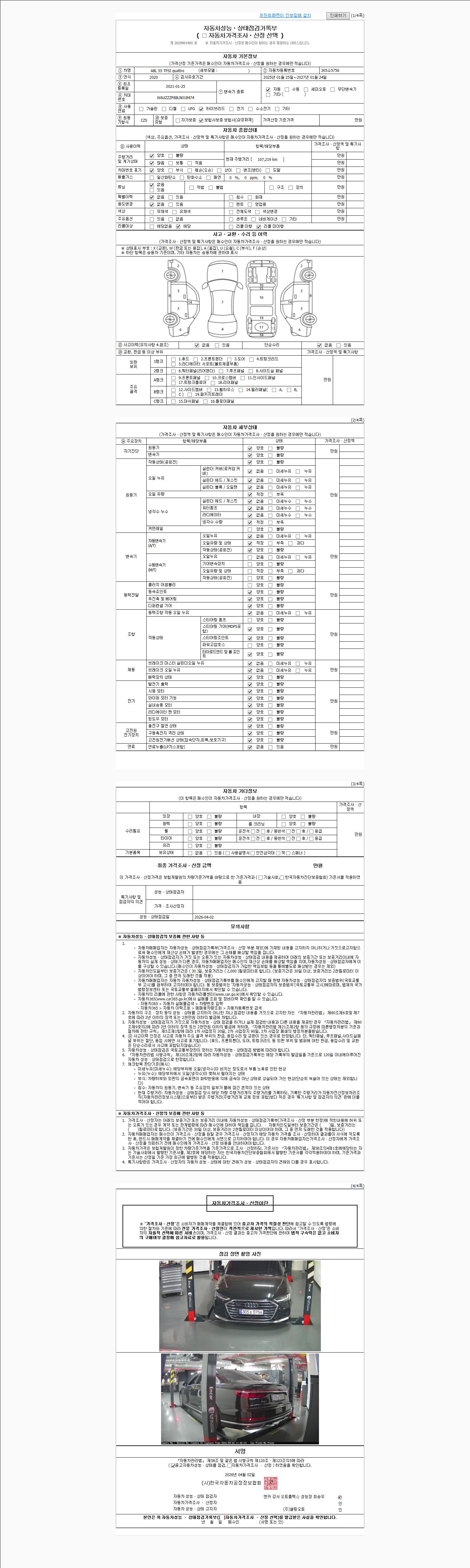 | 주행거리 | 107,219 km | 차량번호 | 305소5756 | 사고유무 | 성능기록부 참조 | 제시번호 | 제 2026045790 호 |