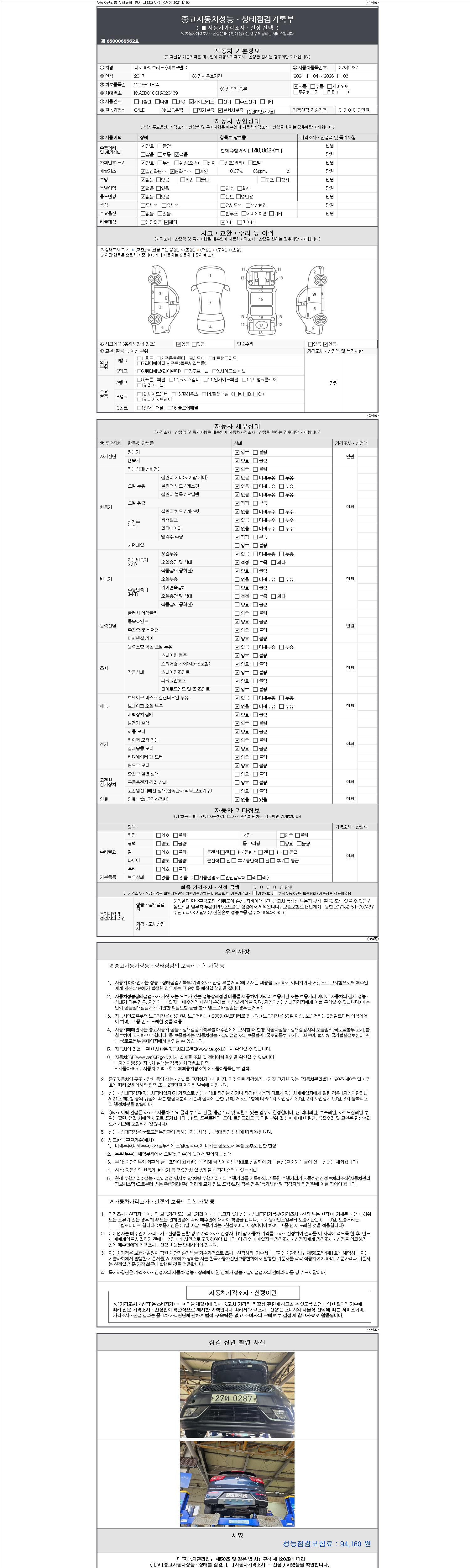 | 주행거리 | 140,862 km | 차량번호 | 27어0287 | 사고유무 | 성능기록부 참조 | 제시번호 | 제 2147483647 호 |