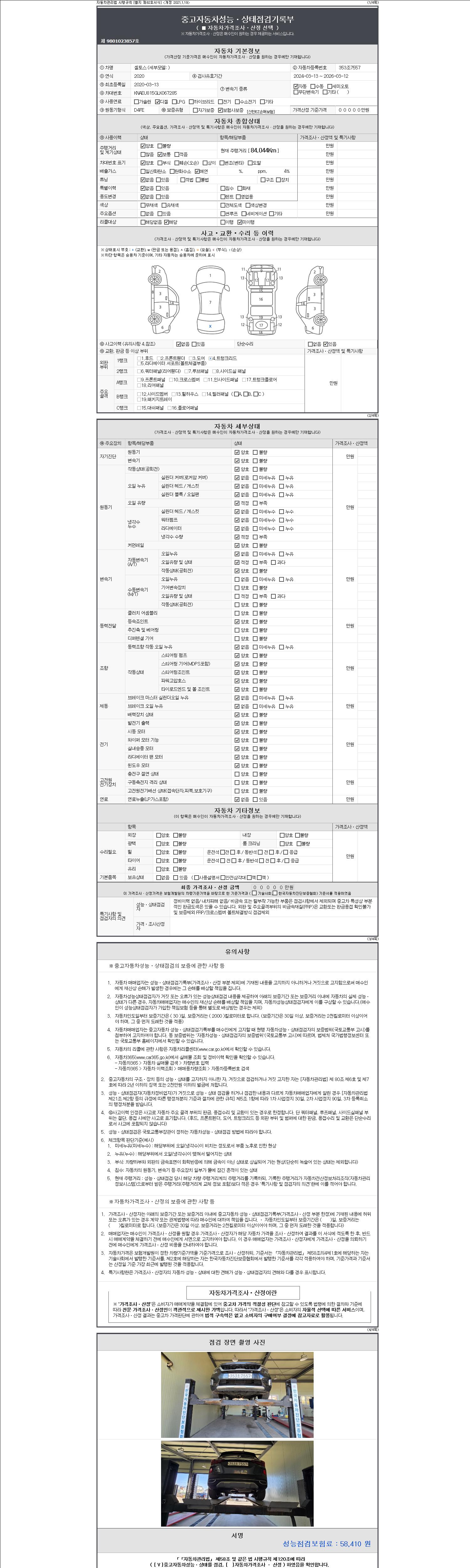 - 2. 차량 등록증이나 성능점검지 등을 상담자에게 요청및 확인하시고 사전에 미리 점검 하시기를 권유드립니다.