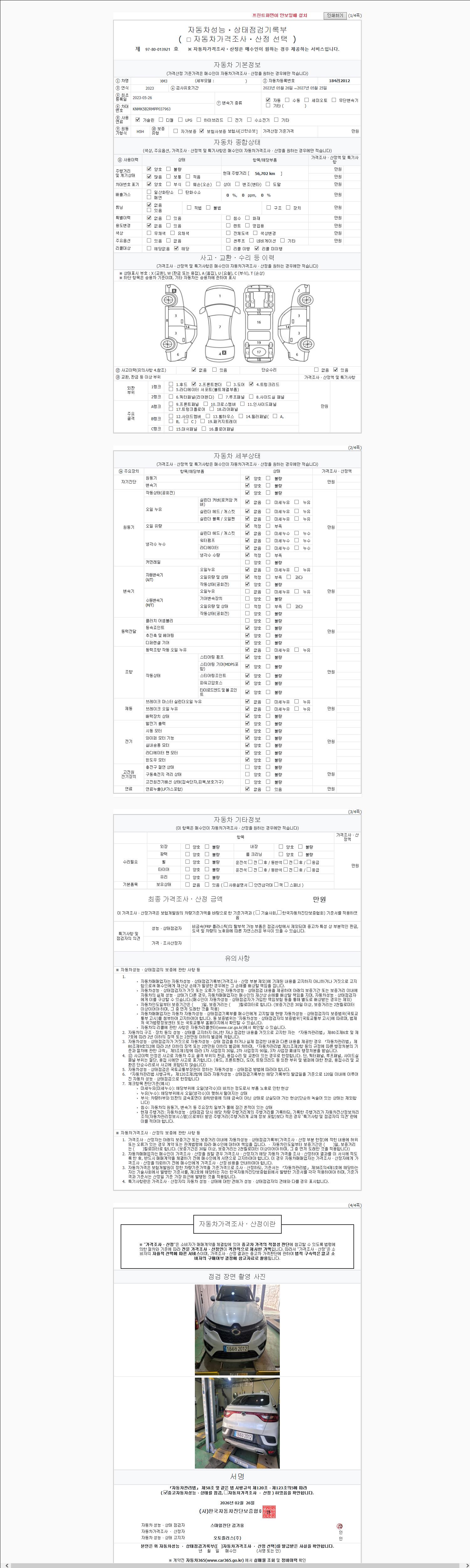 - 2. 차량 등록증이나 성능점검지 등을 상담자에게 요청및 확인하시고 사전에 미리 점검 하시기를 권유드립니다.