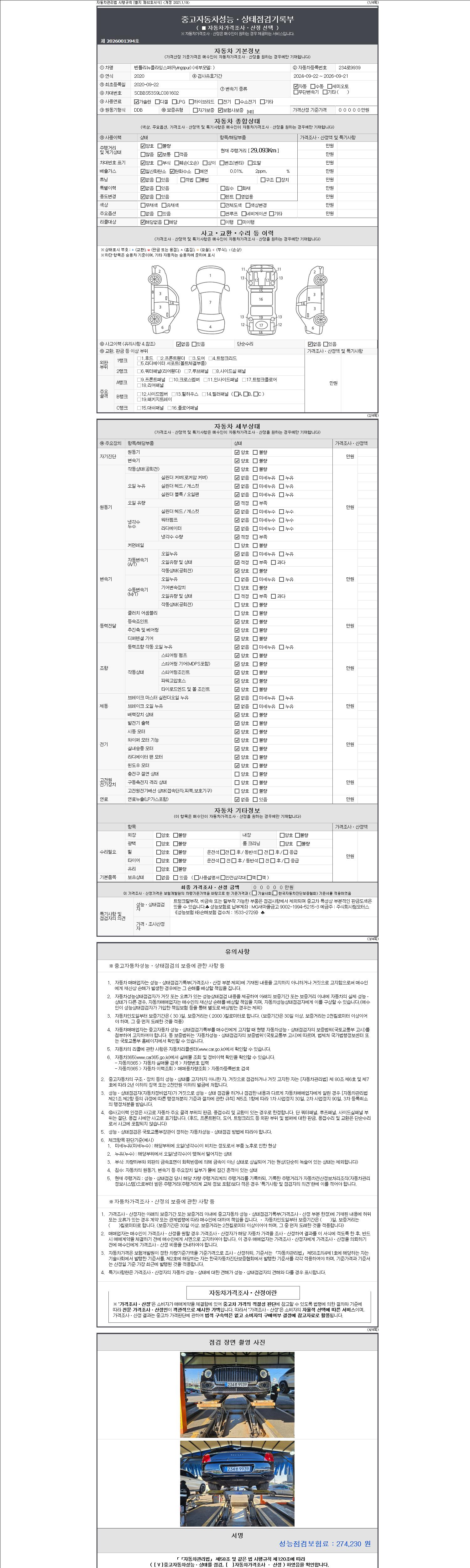 | 주행거리 | 29,093 km | 차량번호 | 234로9939 | 사고유무 | 성능기록부 참조 | 제시번호 | 제 2147483647 호 |