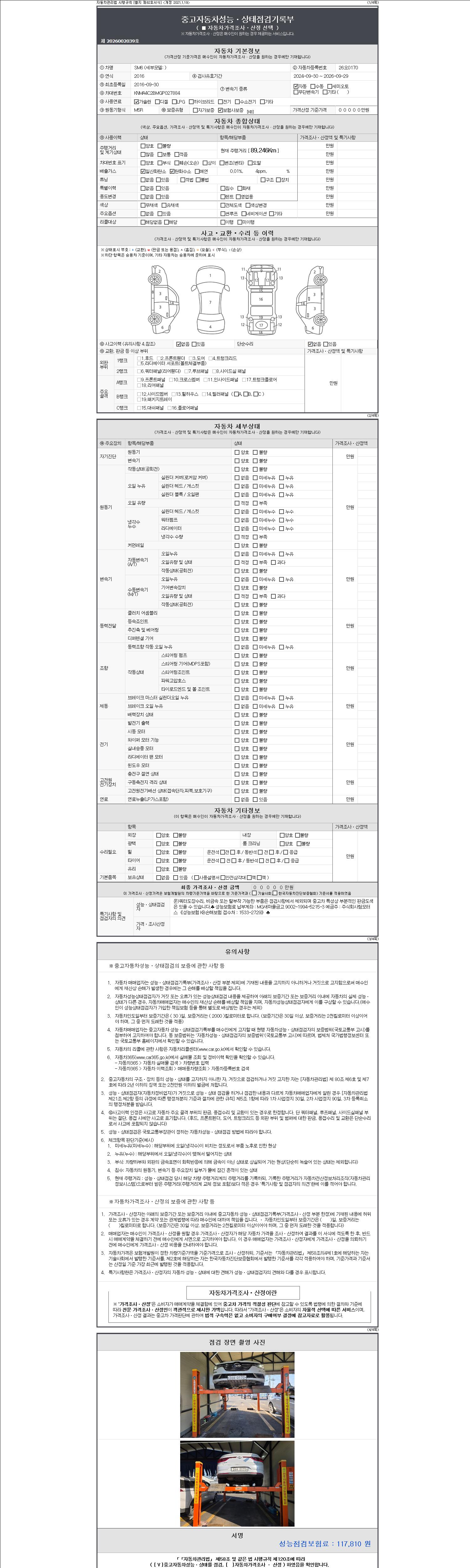 | 주행거리 | 89,246 km | 차량번호 | 26오0170 | 사고유무 | 성능기록부 참조 | 제시번호 | 제 2147483647 호 |