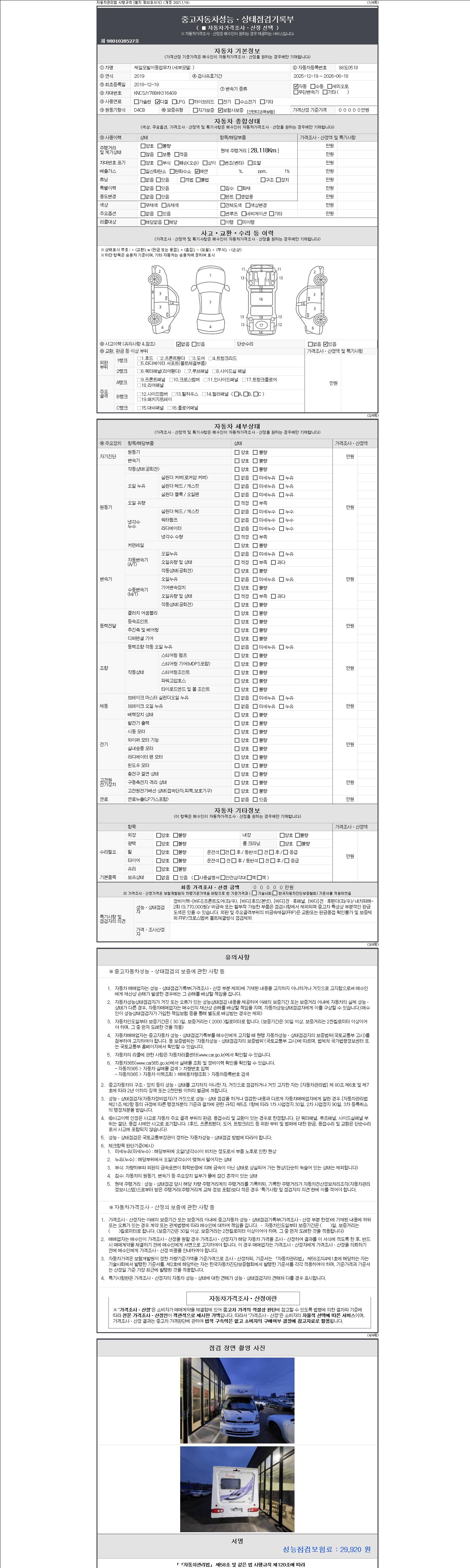 | 주행거리 | 28,118 km | 차량번호 | 98도0518 | 사고유무 | 성능기록부 참조 | 제시번호 | 제 2147483647 호 |
