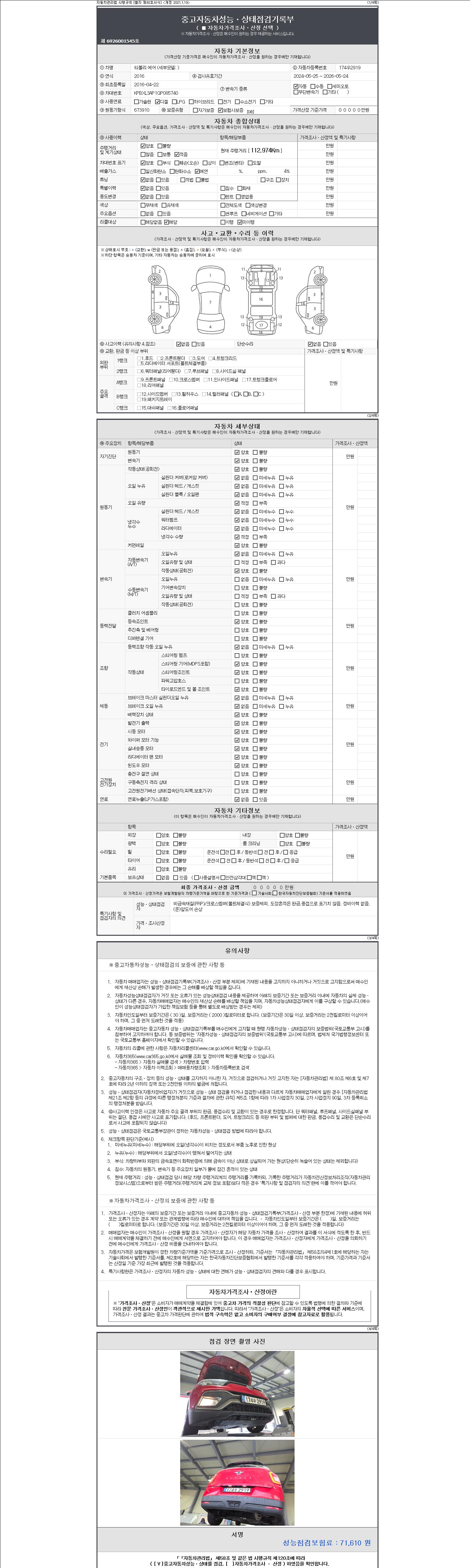 - 사고유무 : 성능기록부 참조
