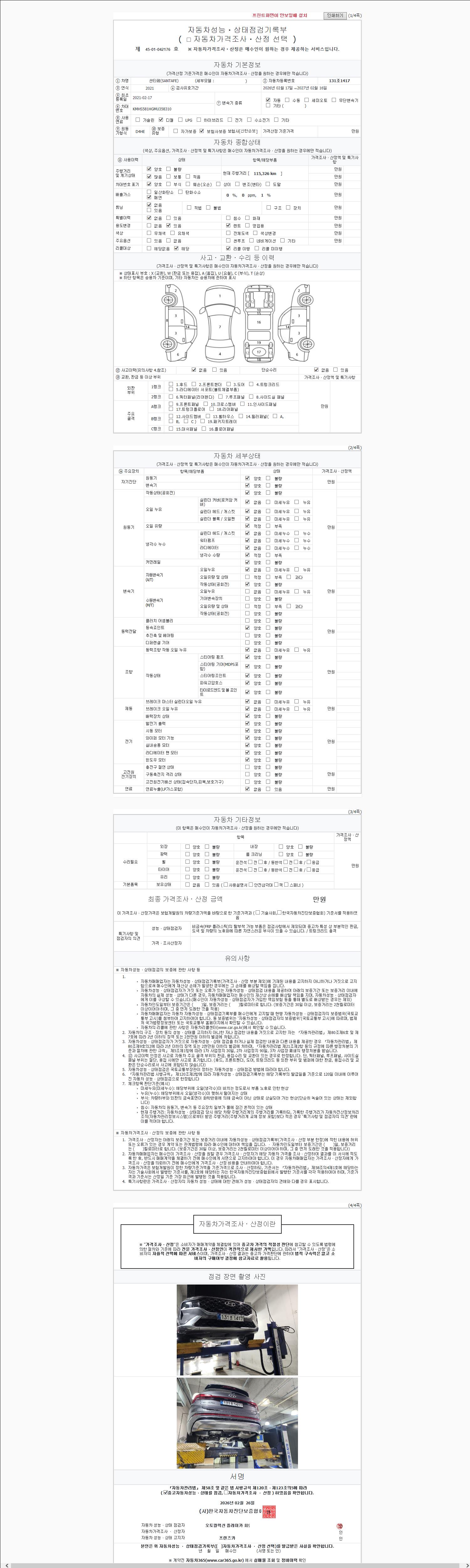 - 2. 차량 등록증이나 성능점검지 등을 상담자에게 요청및 확인하시고 사전에 미리 점검 하시기를 권유드립니다.