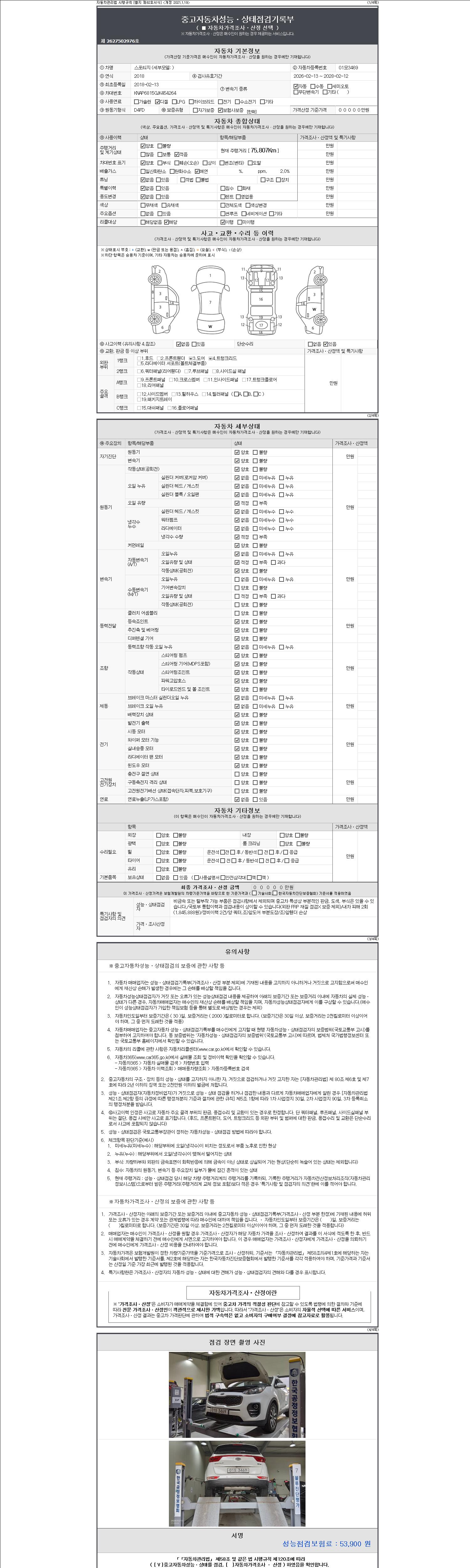 -중고자동차 매매업자를 통해 차량을 구입하실 경우 반드시 "중고자동차 성능, 상태점검 기록부"를 교뷰 받으셔야 하며, 매매업자는 반드시 의무 교부 하여야 압니다.