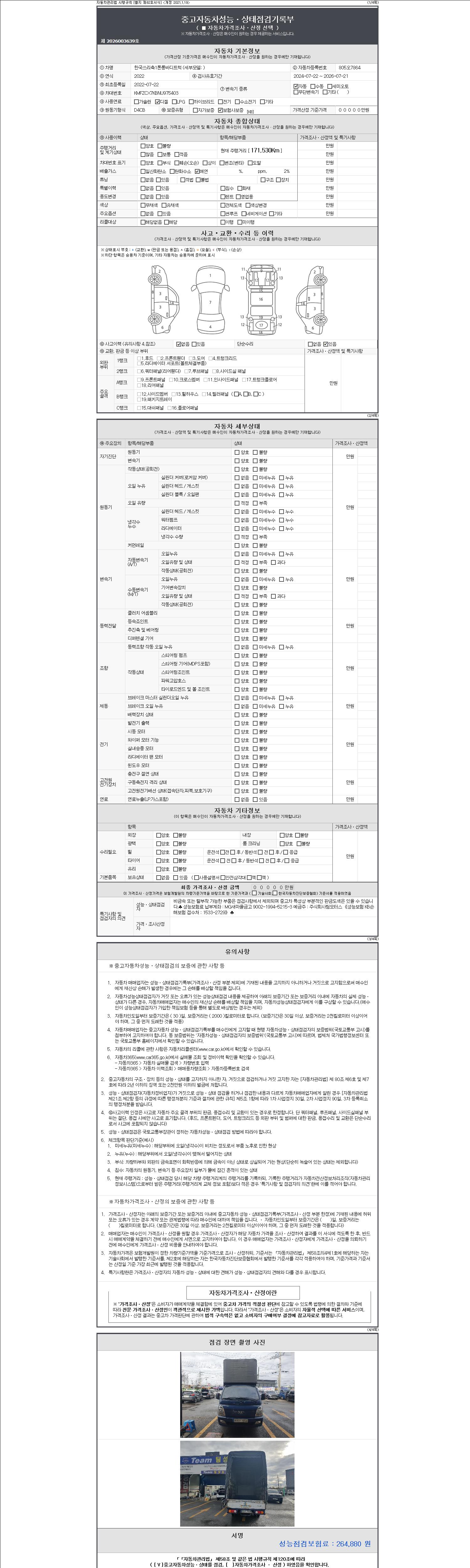 | 주행거리 | 171,530 km | 차량번호 | 805오7864 | 사고유무 | 성능기록부 참조 | 제시번호 | 제 2147483647 호 |