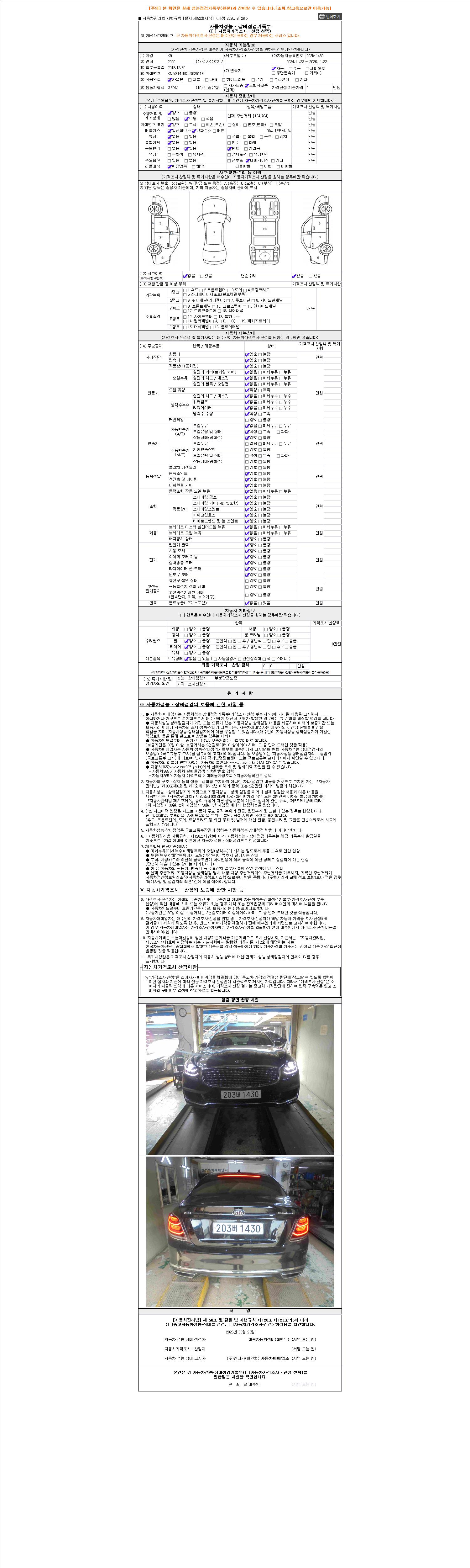 - 2. 차량 등록증이나 성능점검지 등을 상담자에게 요청및 확인하시고 사전에 미리 점검 하시기를 권유드립니다.
