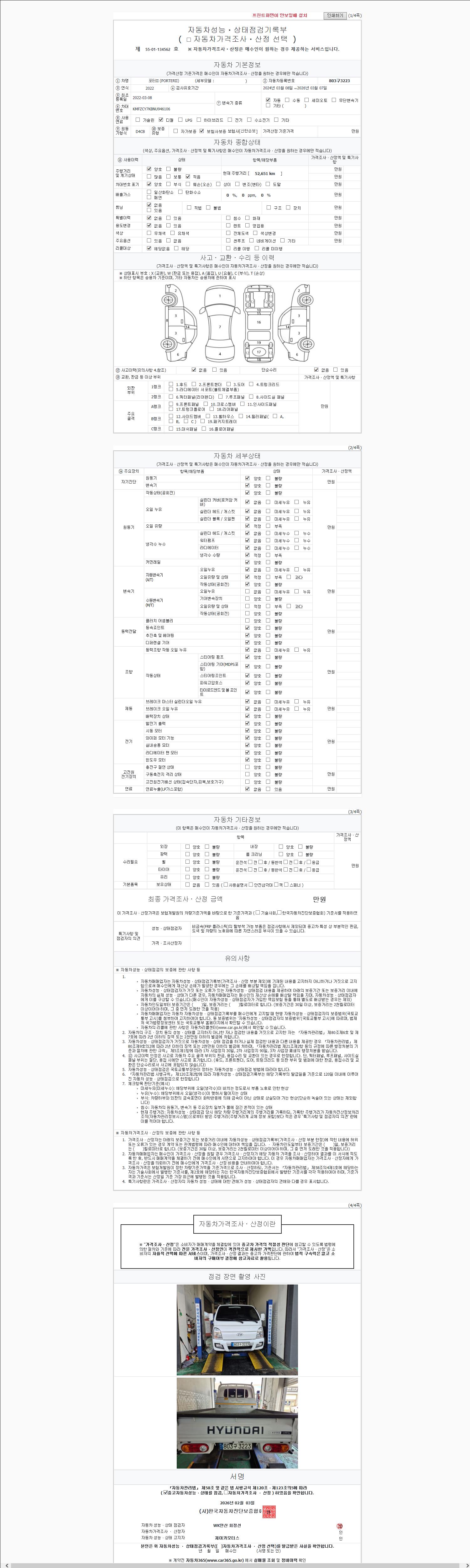 | 주행거리 | 52,651 km | 차량번호 | 803구3223 | 사고유무 | 성능기록부 참조 | 제시번호 | 제 2147483647 호 |