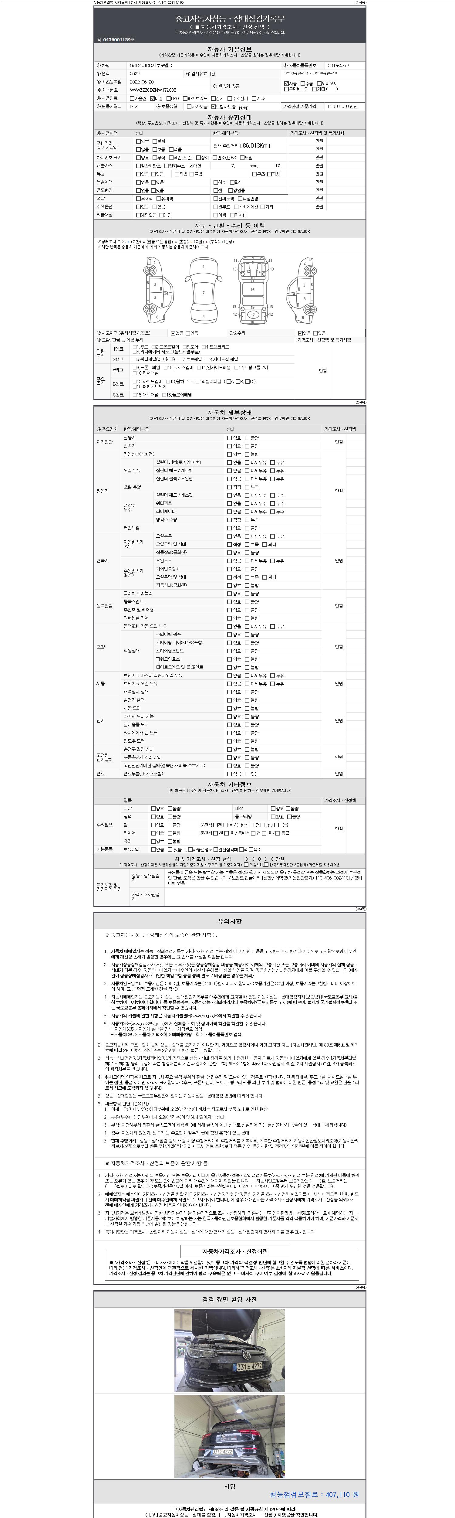 - 2. 차량 등록증이나 성능점검지 등을 상담자에게 요청및 확인하시고 사전에 미리 점검 하시기를 권유드립니다.