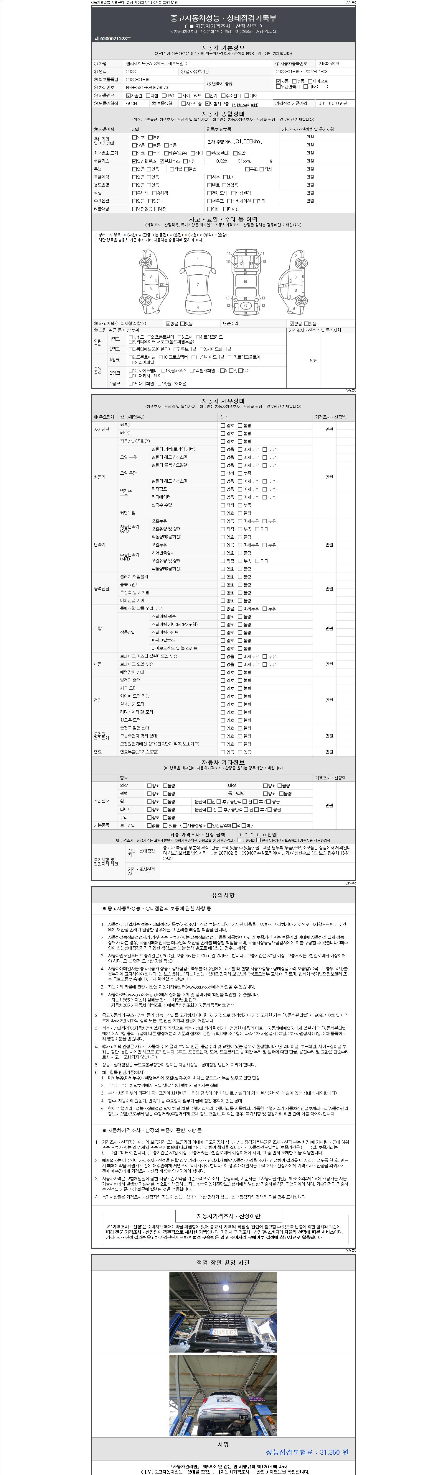 | 주행거리 | 31,065 km | 차량번호 | 216머5823 | 사고유무 | 성능기록부 참조 | 제시번호 | 제 2147483647 호 |