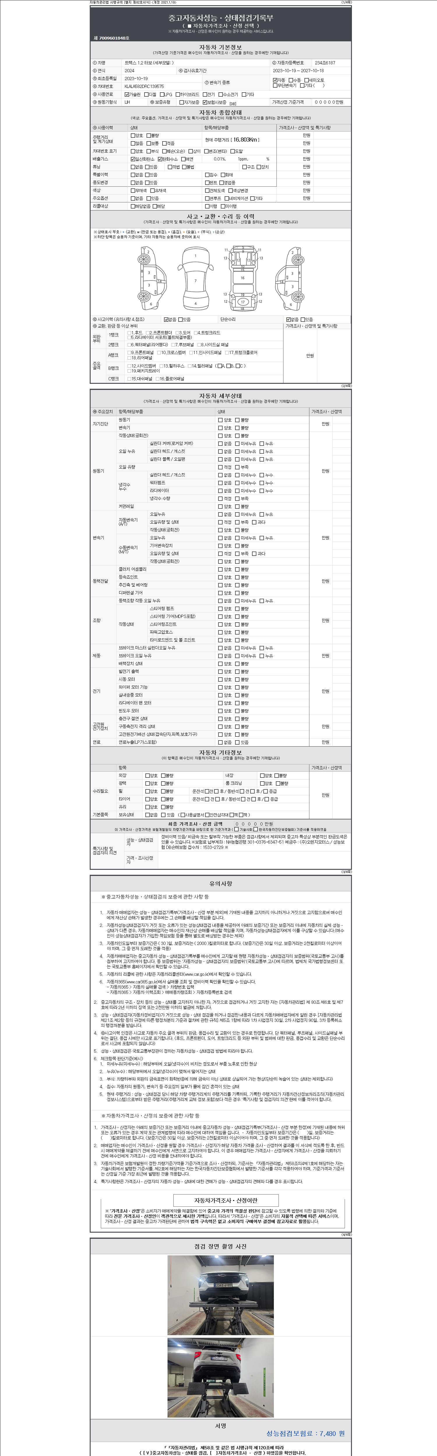 | 주행거리 | 16,803 km | 차량번호 | 234조6187 | 사고유무 | 성능기록부 참조 | 제시번호 | 제 2147483647 호 |