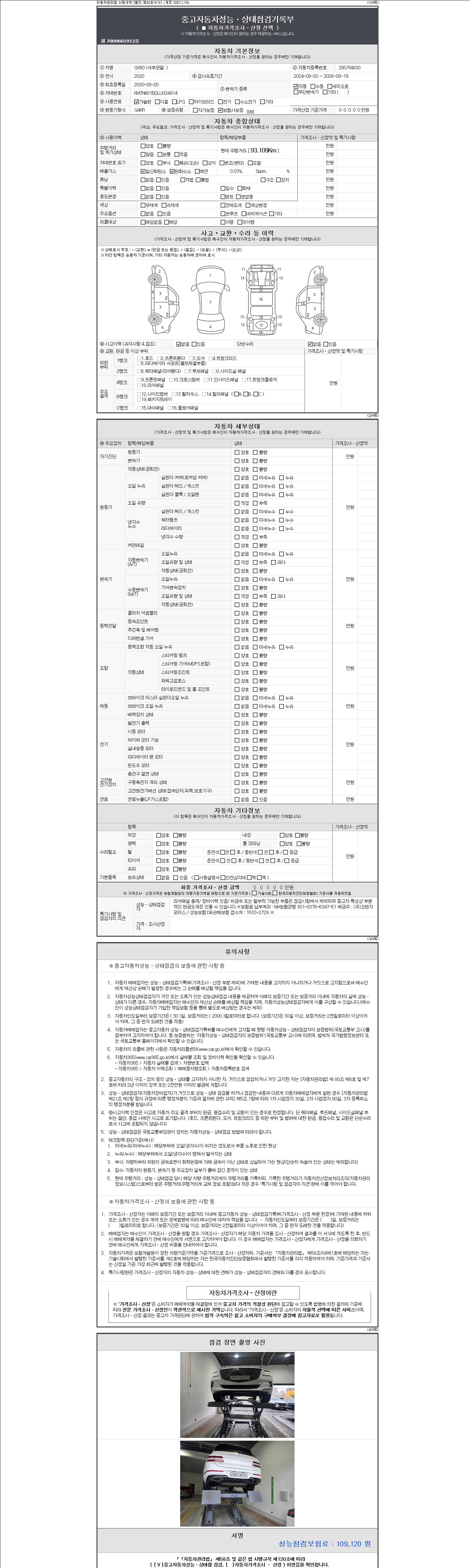 | 주행거리 | 93,109 km | 차량번호 | 280거4830 | 사고유무 | 성능기록부 참조 | 제시번호 | 제 2147483647 호 |