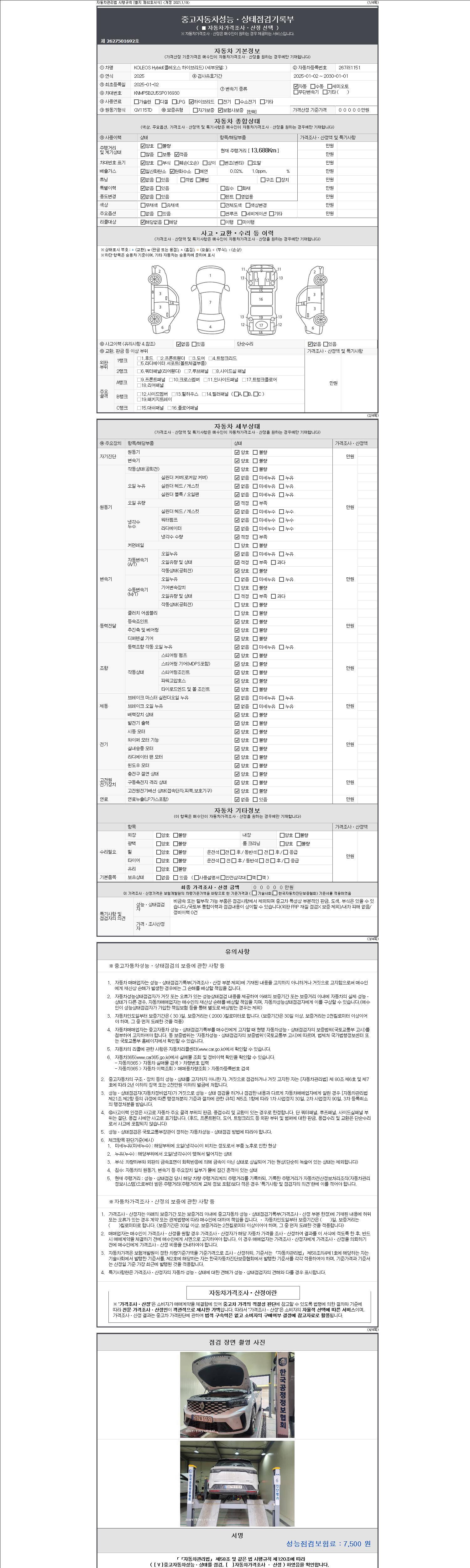 - 2. 차량 등록증이나 성능점검지 등을 상담자에게 요청및 확인하시고 사전에 미리 점검 하시기를 권유드립니다.