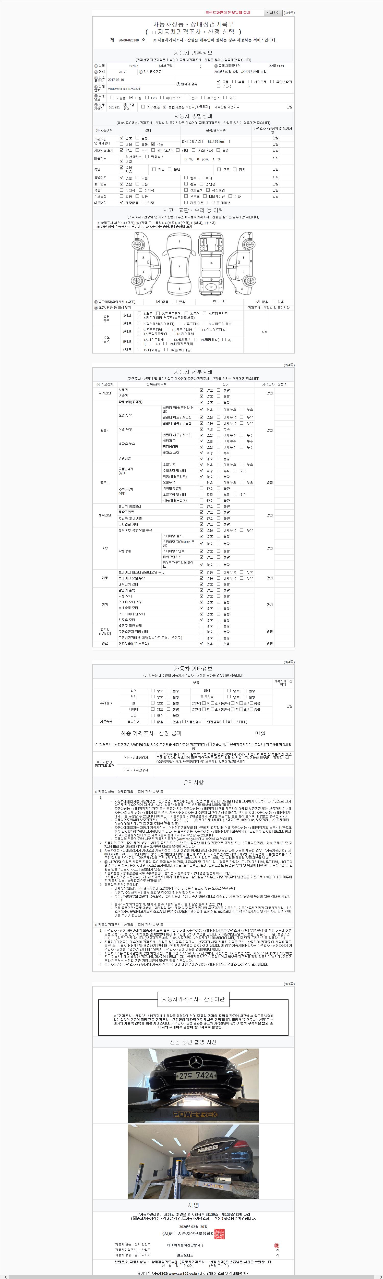 - 2. 차량 등록증이나 성능점검지 등을 상담자에게 요청및 확인하시고 사전에 미리 점검 하시기를 권유드립니다.