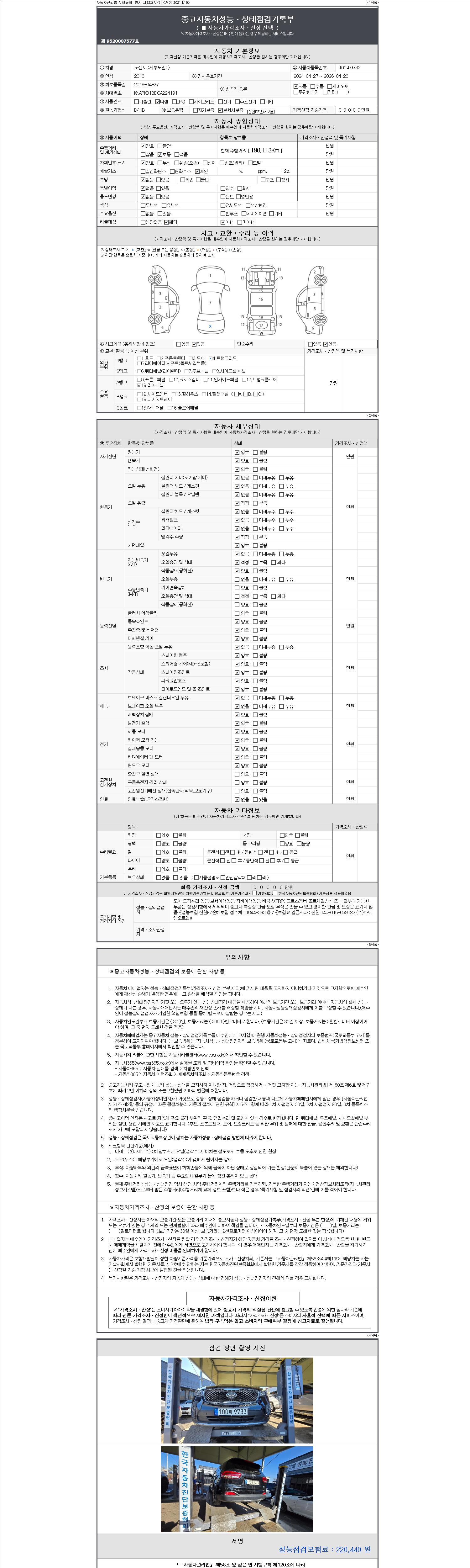 - 사고유무 : 성능기록부 참조