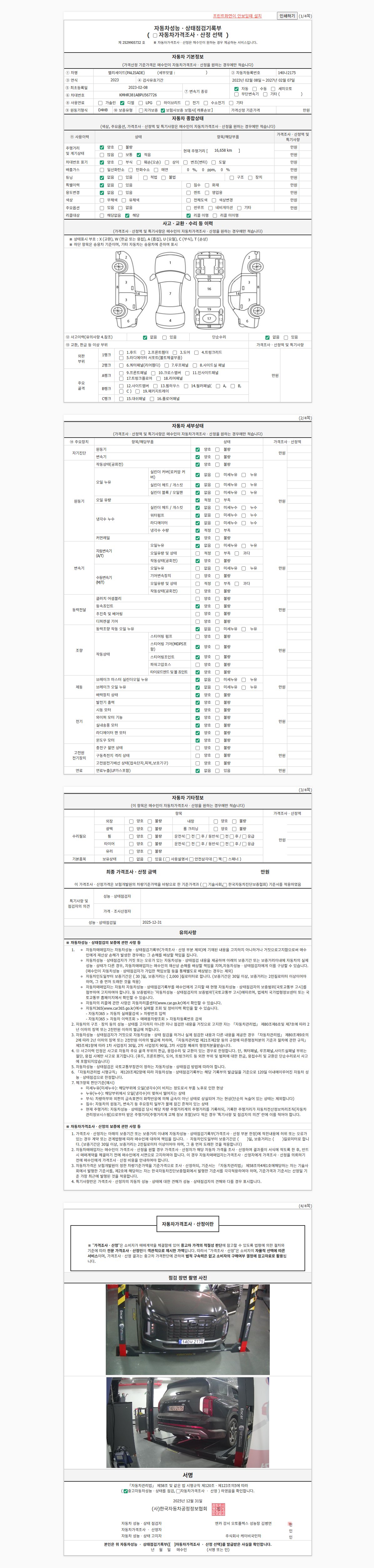 | 주행거리 | 16,658 km | 차량번호 | 140나2175 | 사고유무 | 성능기록부 참조 | 제시번호 | 제 2025178666 호 |