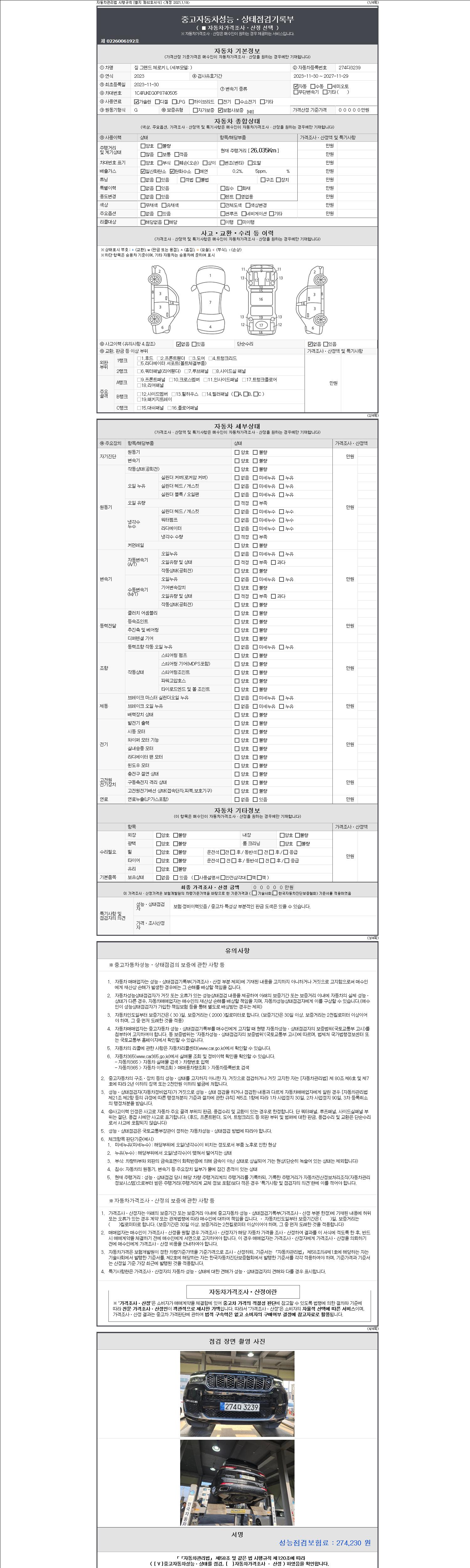 | 주행거리 | 26,035 km | 차량번호 | 274다3239 | 사고유무 | 성능기록부 참조 | 제시번호 | 제 2147483647 호 |