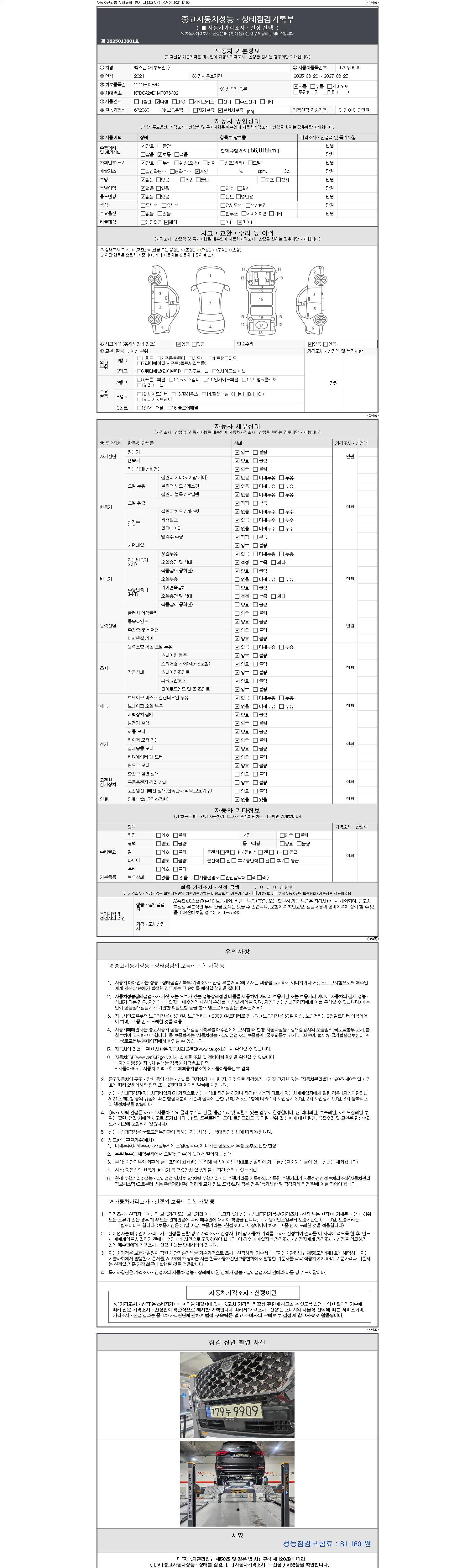 | 주행거리 | 56,015 km | 차량번호 | 179누9909 | 사고유무 | 성능기록부 참조 | 제시번호 | 제 2147483647 호 |