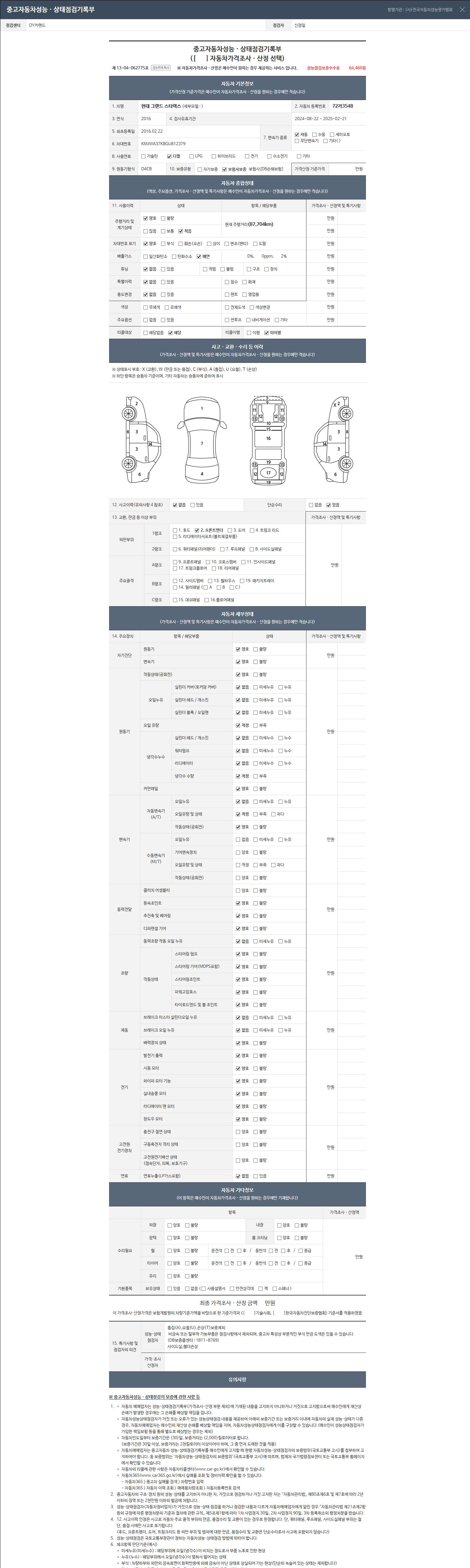- 2. 차량 등록증이나 성능점검지 등을 상담자에게 요청및 확인하시고 사전에 미리 점검 하시기를 권유드립니다.