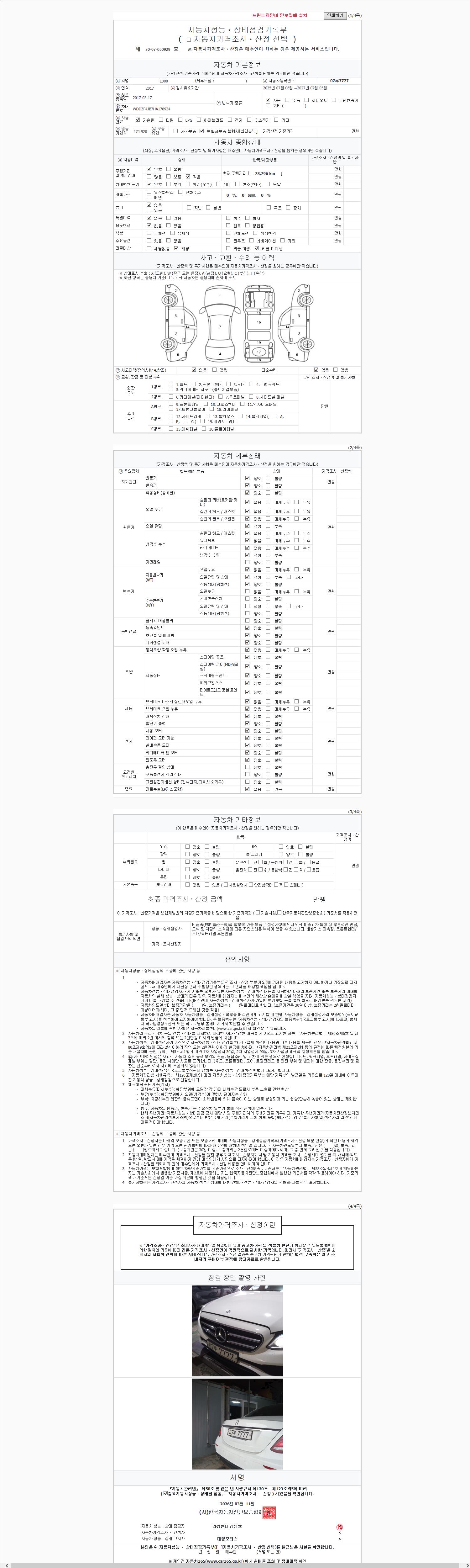 - 2. 차량 등록증이나 성능점검지 등을 상담자에게 요청및 확인하시고 사전에 미리 점검 하시기를 권유드립니다.