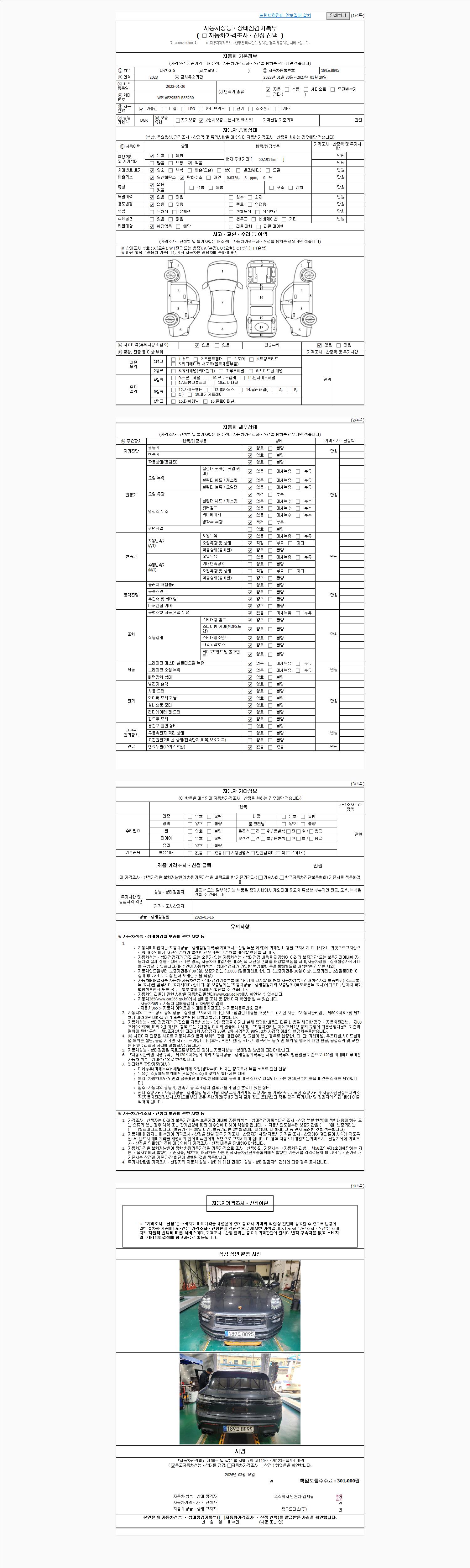 - 사고유무 : 성능기록부 참조