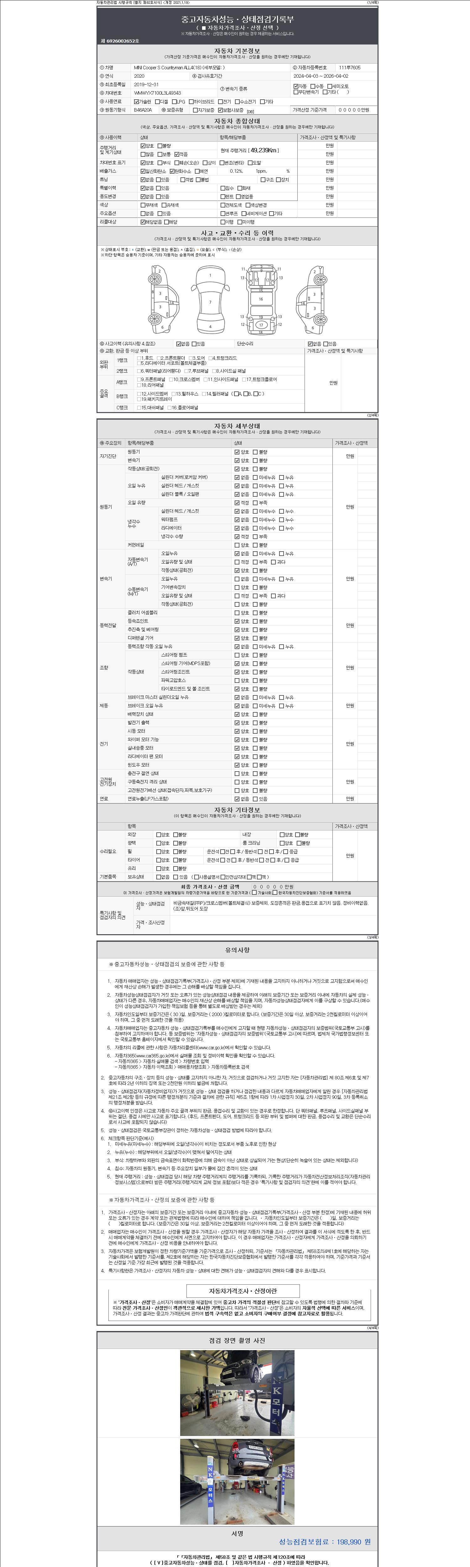 - 사고유무 : 성능기록부 참조
