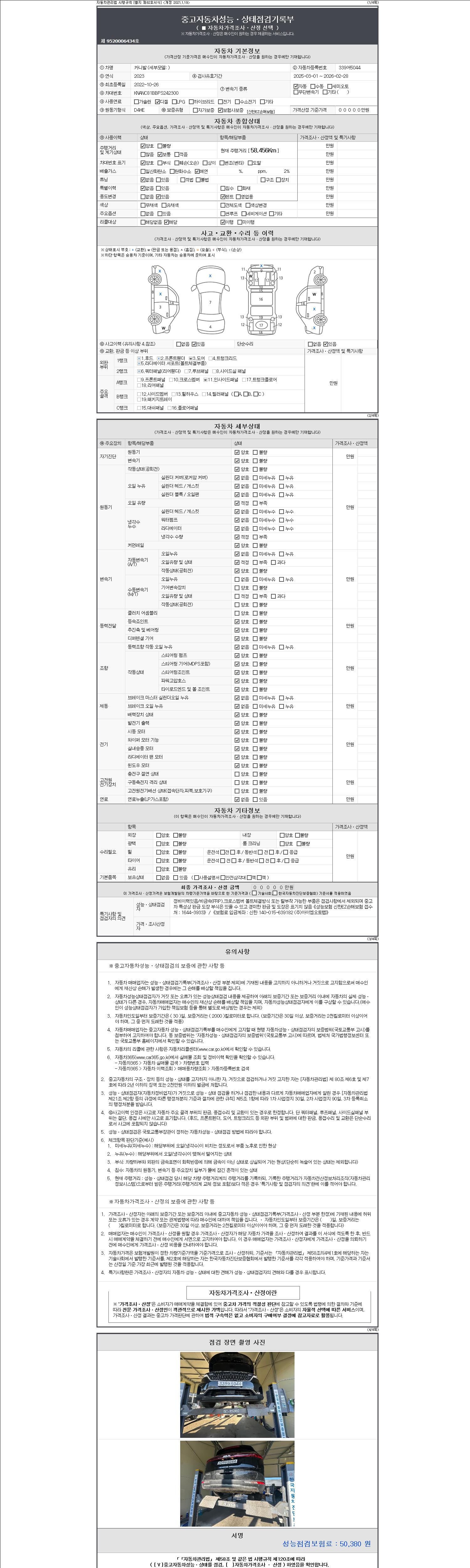 - 2. 차량 등록증이나 성능점검지 등을 상담자에게 요청및 확인하시고 사전에 미리 점검 하시기를 권유드립니다.