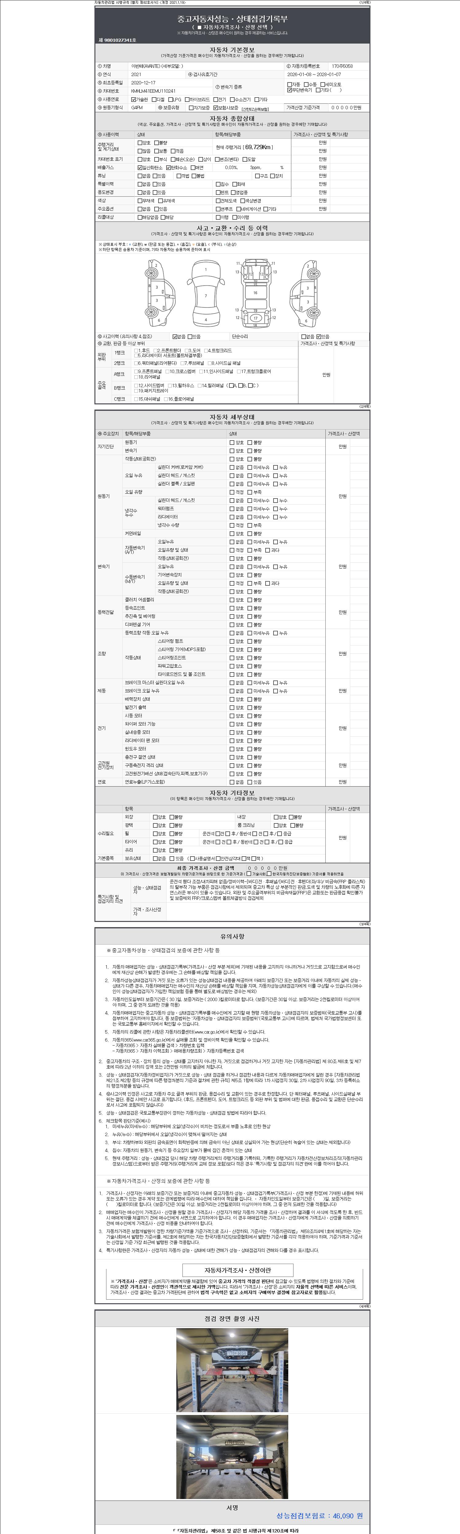 | 주행거리 | 69,729 km | 차량번호 | 170주5058 | 사고유무 | 성능기록부 참조 | 제시번호 | 제 2147483647 호 |